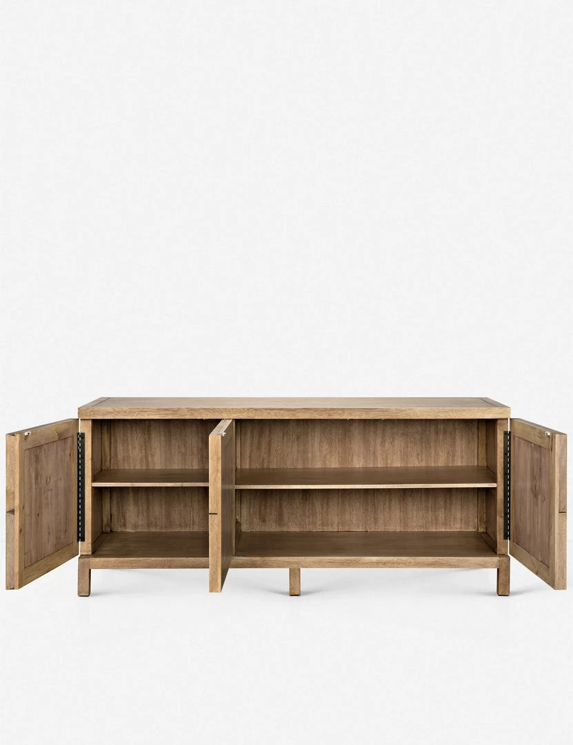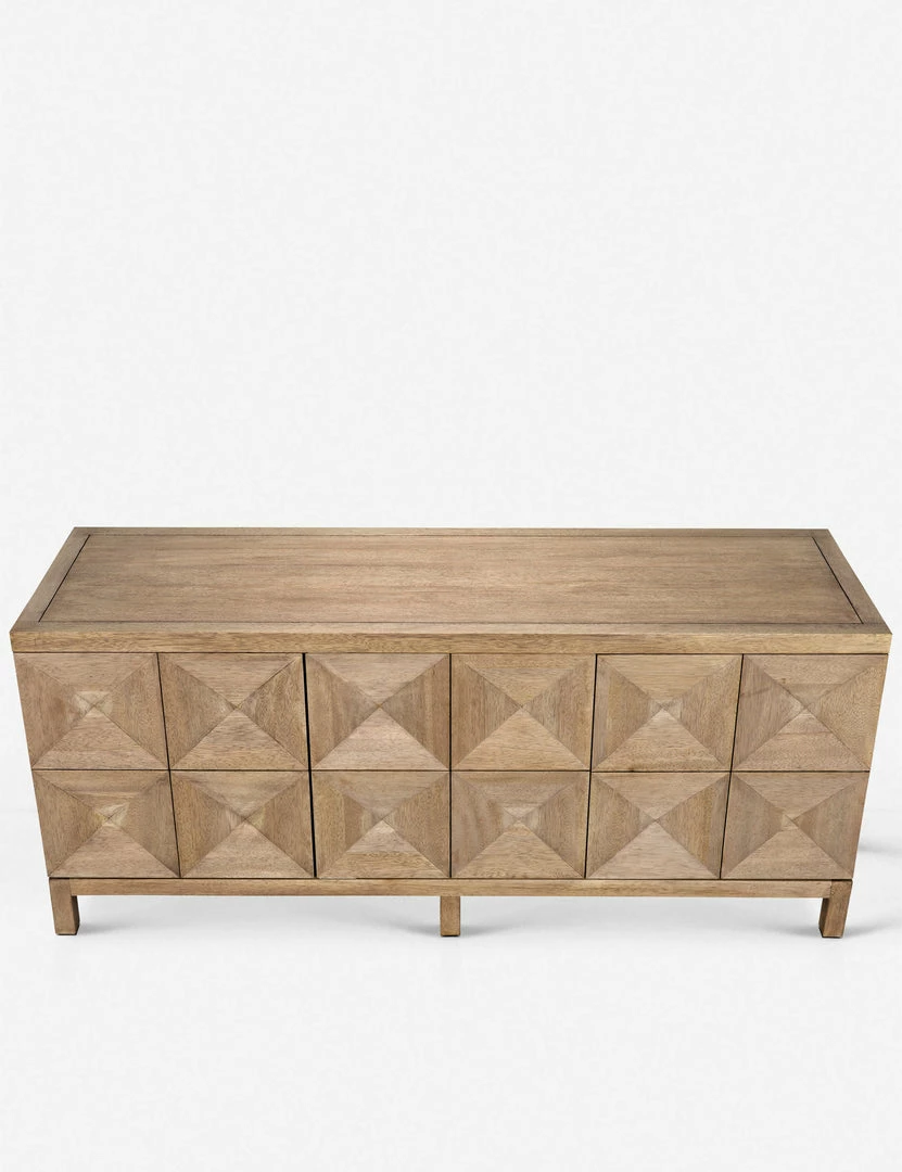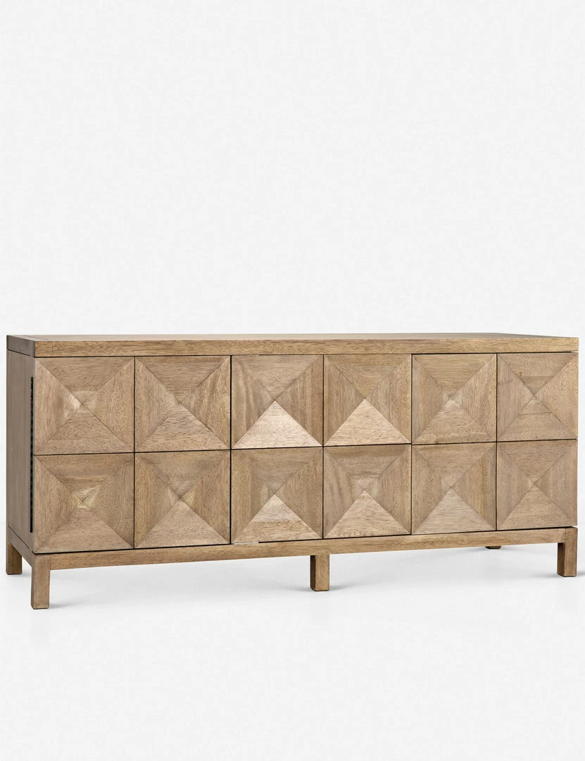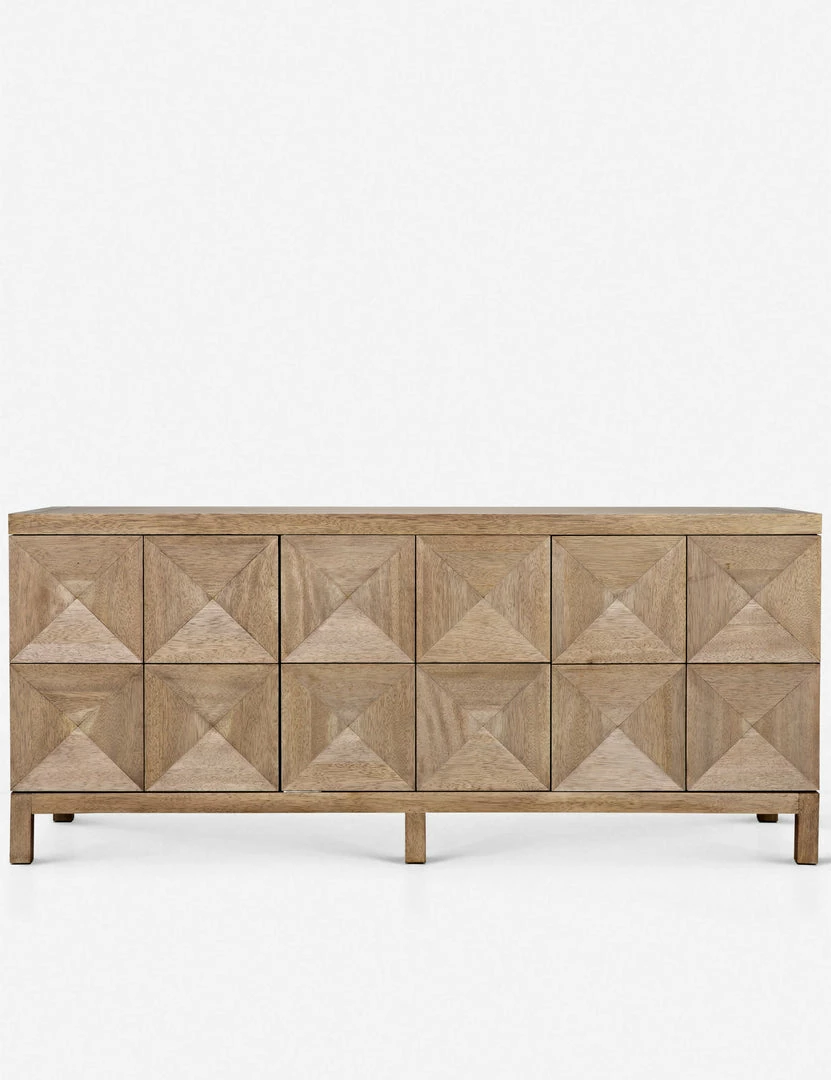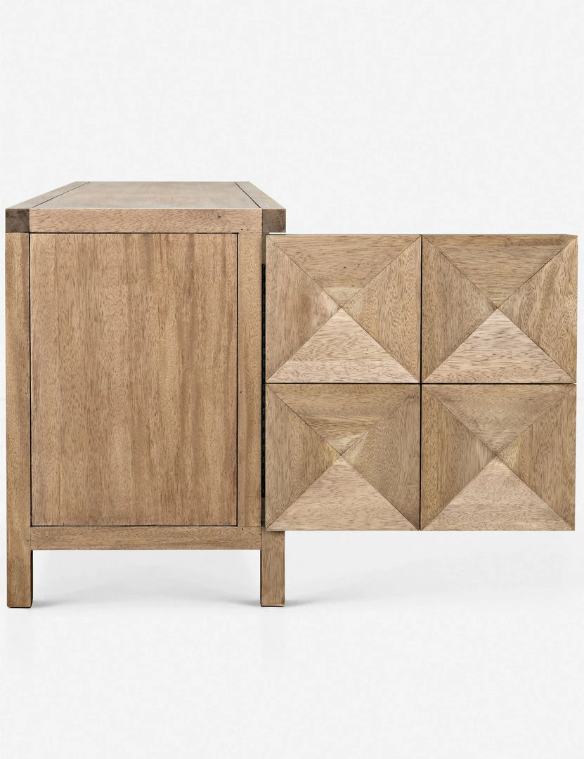 A sideboard that’s anything but two-dimensional. The concave diamond pattern gives the doors a 3D look, while the natural washed walnut adds a welcome dose of warmth, ideal for dining rooms and living rooms with a mid-century aesthetic.