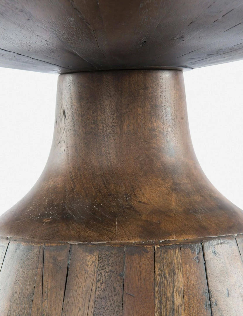 A bold, modern pedestal table gets a transitional update thanks to a wood-plank construction. Natural grains and textures give it a homey character, perfect for gathering around for your favorite meals.