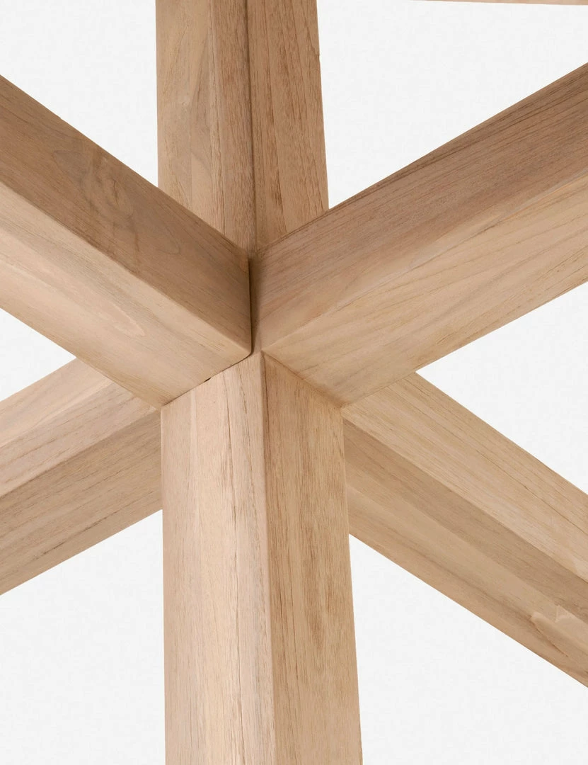 While this round dining table appears simple at first, a second look reveals an angular intersecting base, and a gorgeous solid teak wood construction. It can seat up to 5 people on your patio or deck!