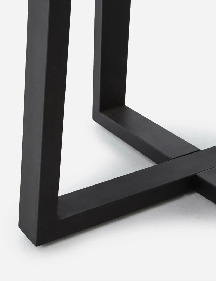 For modern style indoors or out, add this round dining table to the mix. Featuring a lavastone top and sturdy black iron base, it’s a minimalistic look with industrial edge.