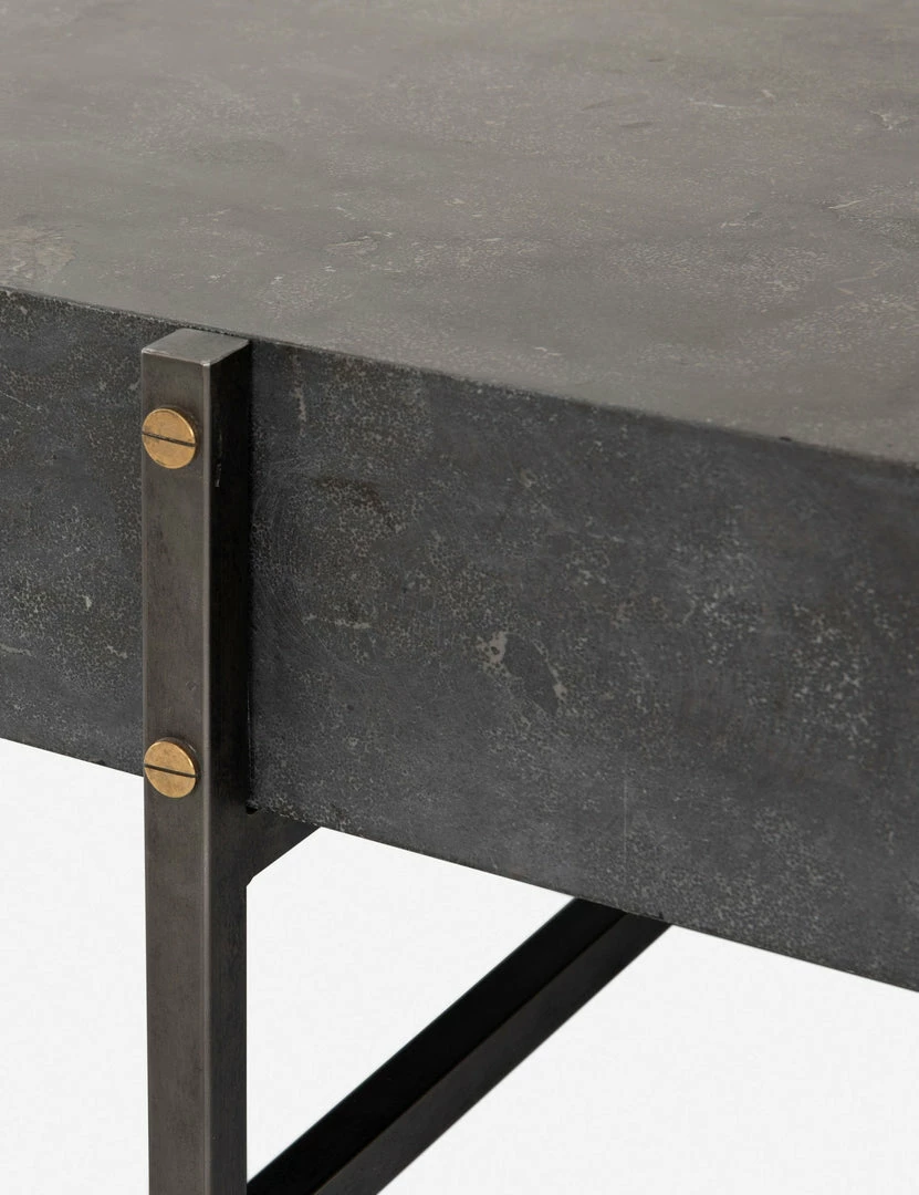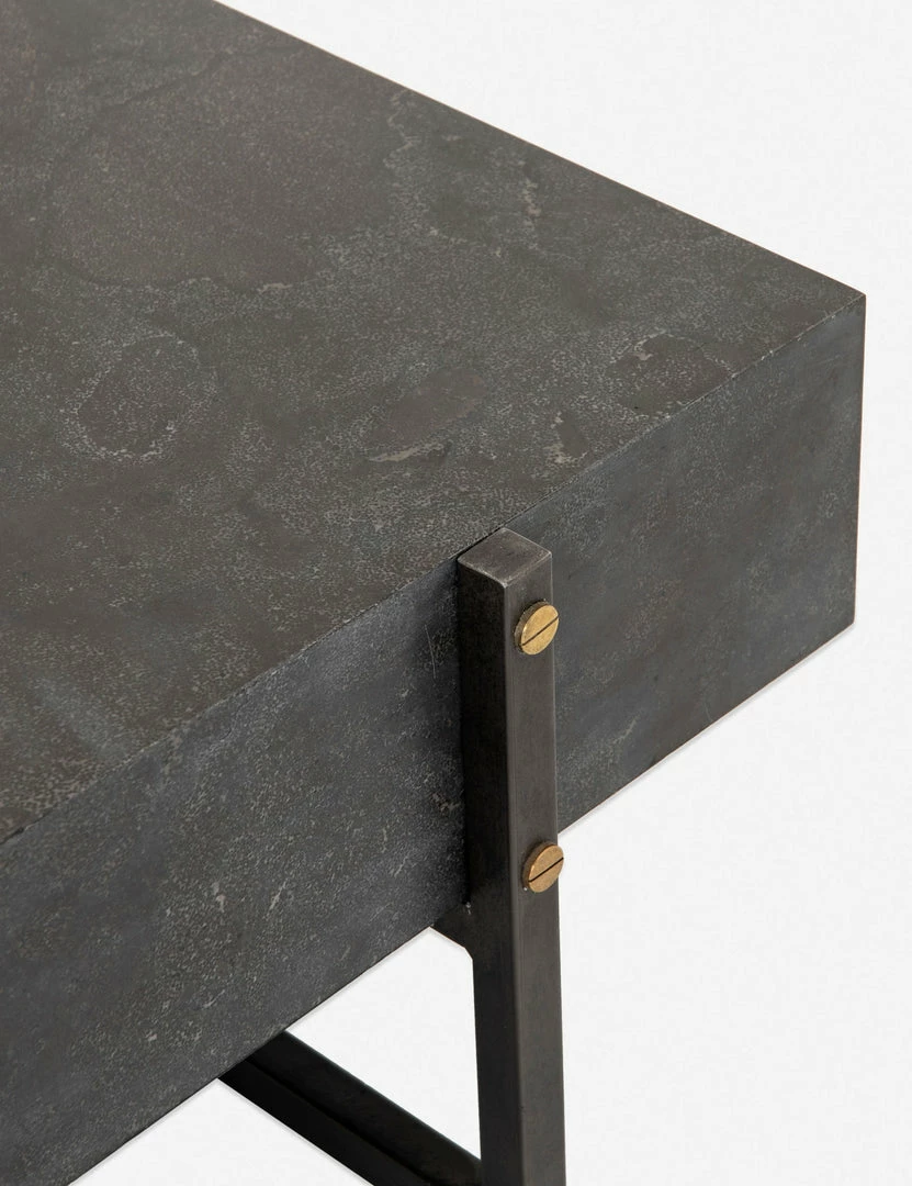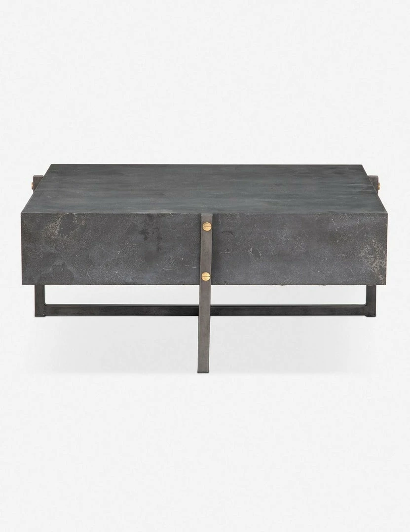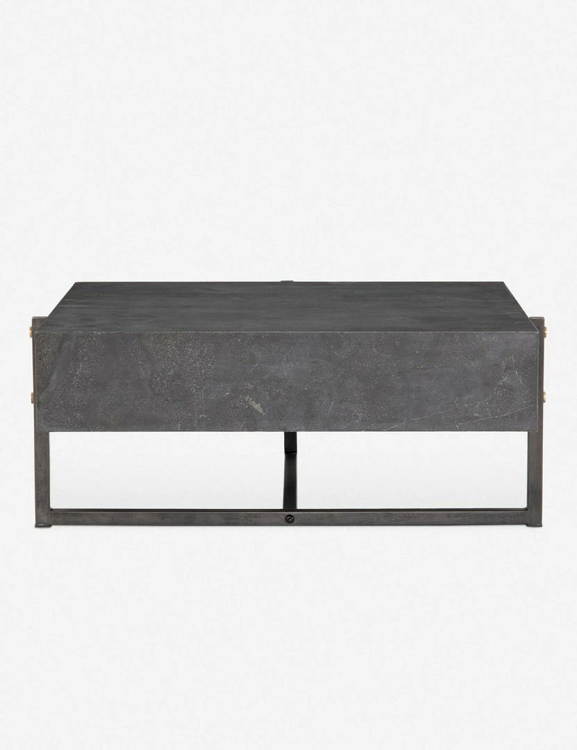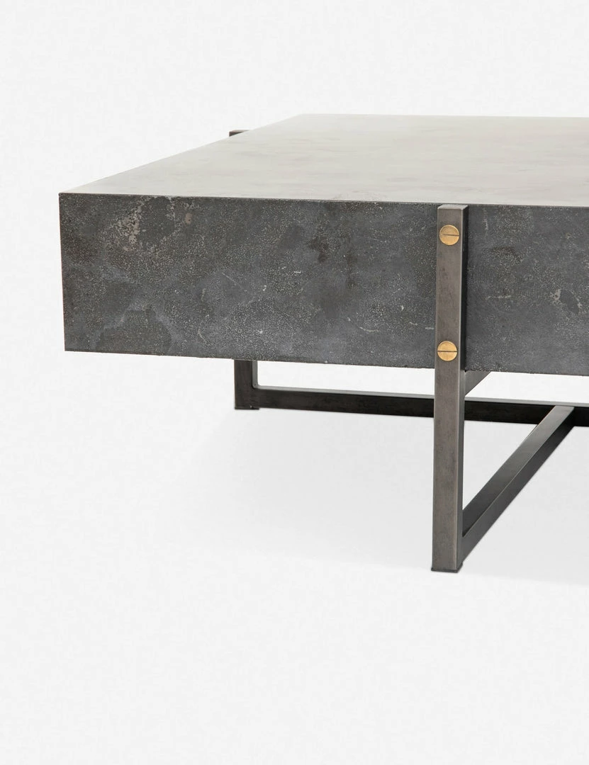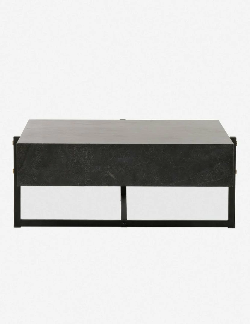 A statement-making, modern coffee table makes for the perfect centerpiece in your living space. Featuring a bold square shape in bluestone veneer, floating in a minimal black iron frame for an industrial finish.