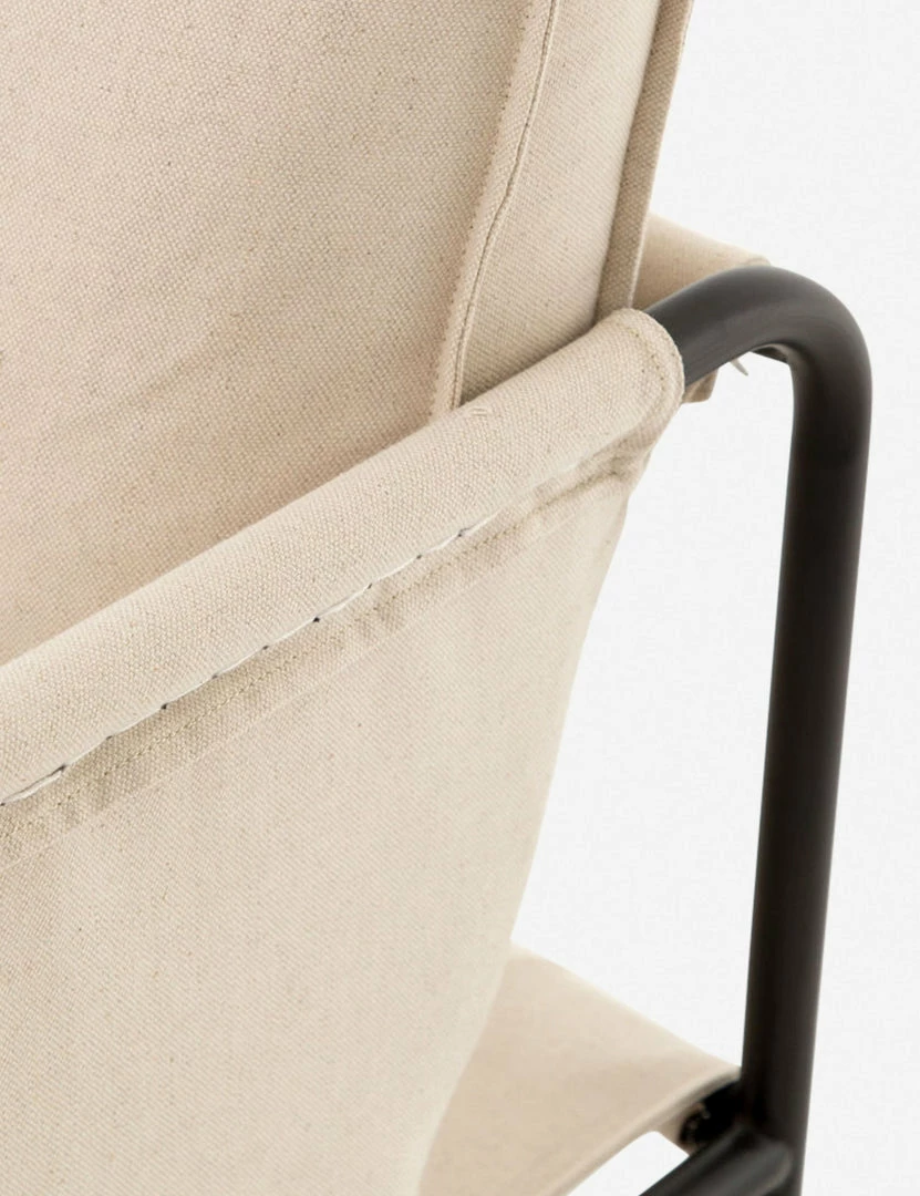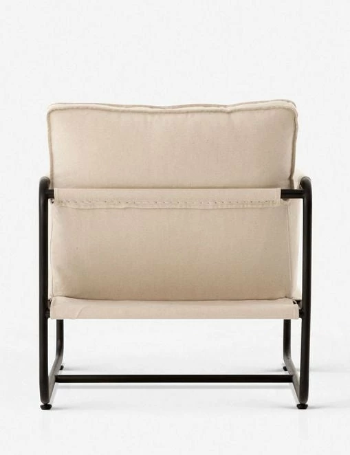 Relax in style with the Alena chair. The black metal frame contrasts with cream linen cushions for a look that’s both inviting and industrial-chic.