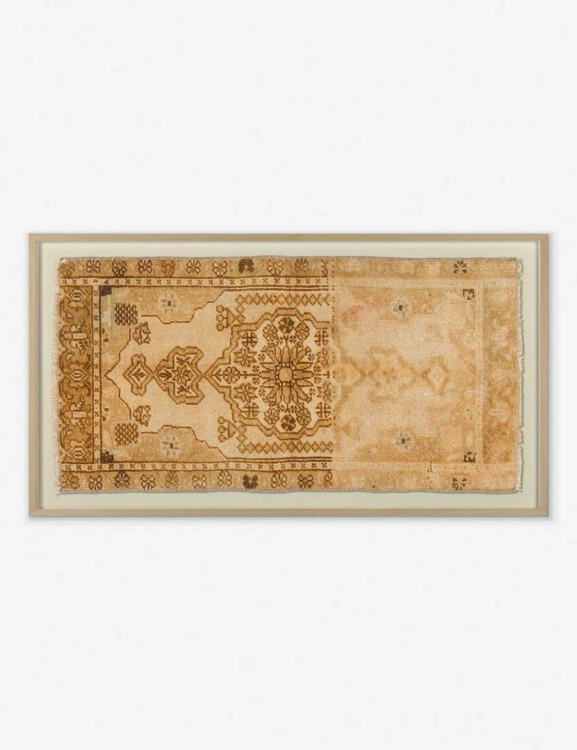 Instantly transform your walls with this limited-edition collection of framed textile wall art. Sourced from a small batch of vintage rugs, this textural and one-of-a-kind piece adds warmth, rich color, and stunning detail—making it an ideal focal point in your entry or living room above a console. Finished with a raw wood frame and simple mat to add a touch of polish to this artwork for your wall.