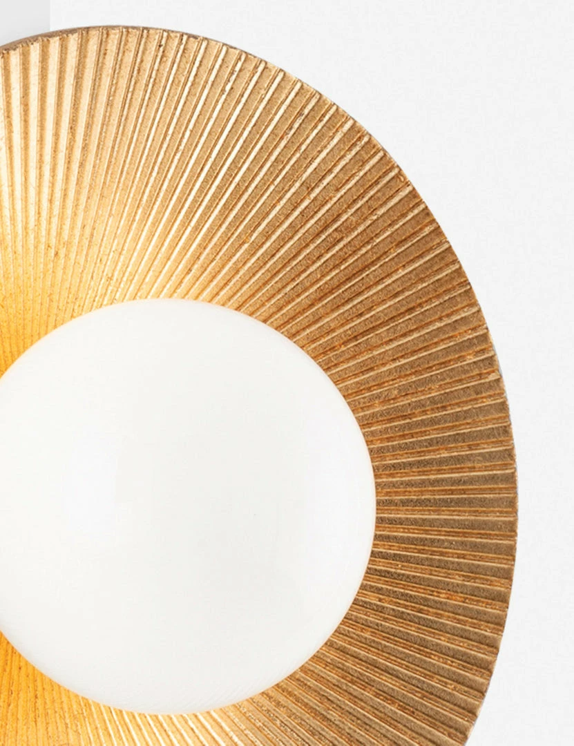 Add a touch of glamour to any room with this dazzling sconce light. The opal shade reflects diffused light off the ridged backplate, which is clad in a gold leaf finish for an eye-catching wall lighting feature. Plus, the sconce is damp-rated for elevated style from your en suite to a living space.