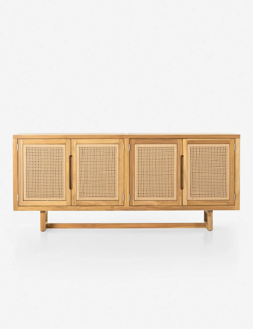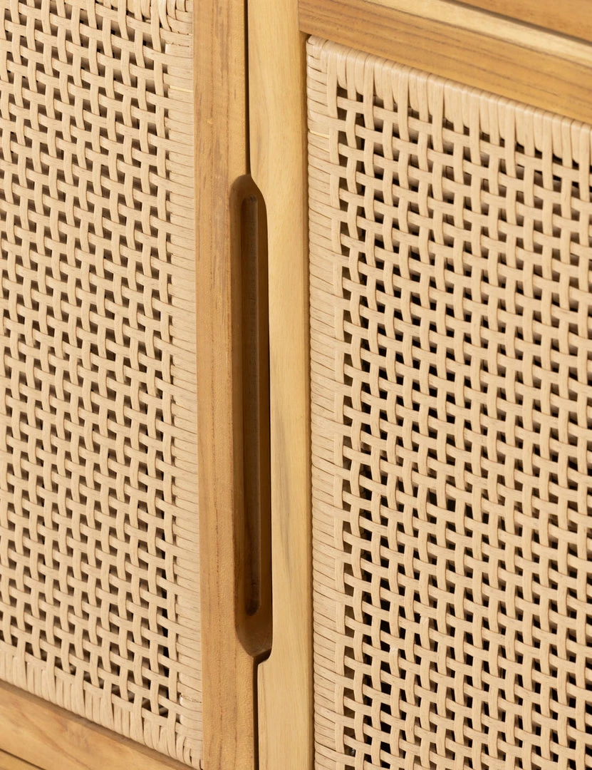 Inspire a space that feels elevated yet timelessly casual with this versatile indoor/outdoor collection. A solid teak frame with all-weather wicker doors offers the Anson sideboard buffet a breezy charm. Create unique storage appeal in a transitional space or outdoor lounge with this sideboard cabinet.