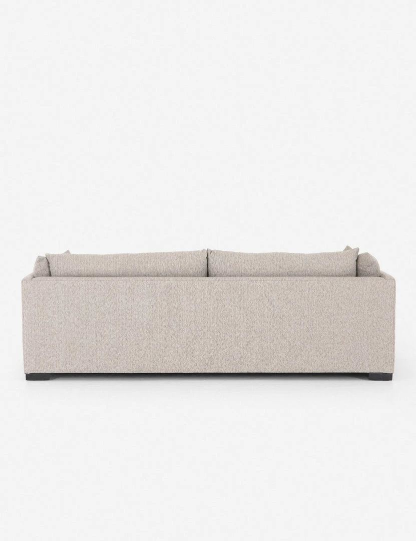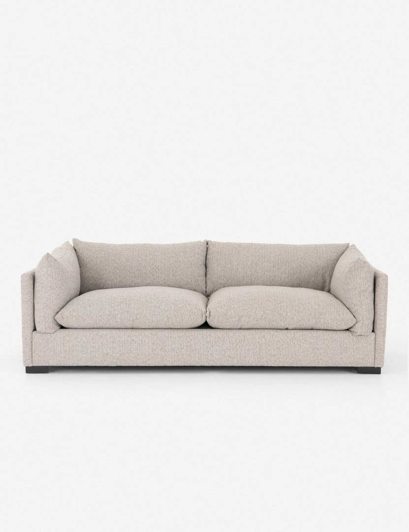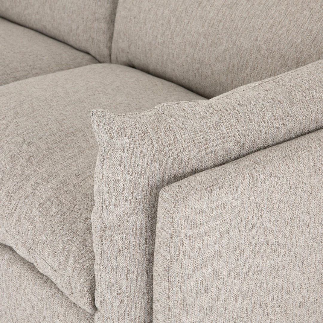 Featuring heathered upholstery and slim lines, our Arlen Sofa has a transitional look we love. A shelter-style design with comfortable back and side cushions meant for lounging, this living room couch gives your space an inviting feel.
