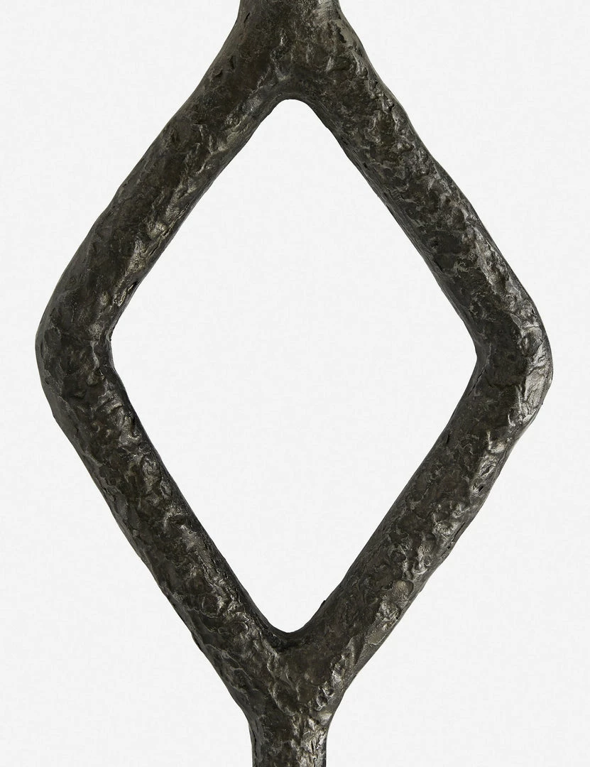 This sculptural floor lamp is in a league of its own, featuring a slim cast iron base with an open diamond shape that makes it a focal point in any room. Finished with a simple drum shade and a white marble base for an elegant touch.