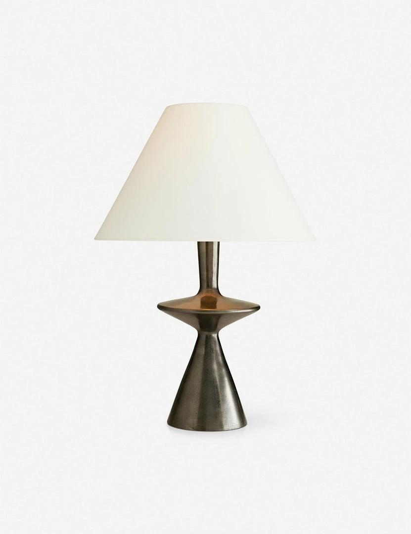 Showcasing the power of balance and geometry, this bold table lamp is a modern marvel. Constructed in aluminum, it has an industrial look that fits in with contemporary aesthetics, too.