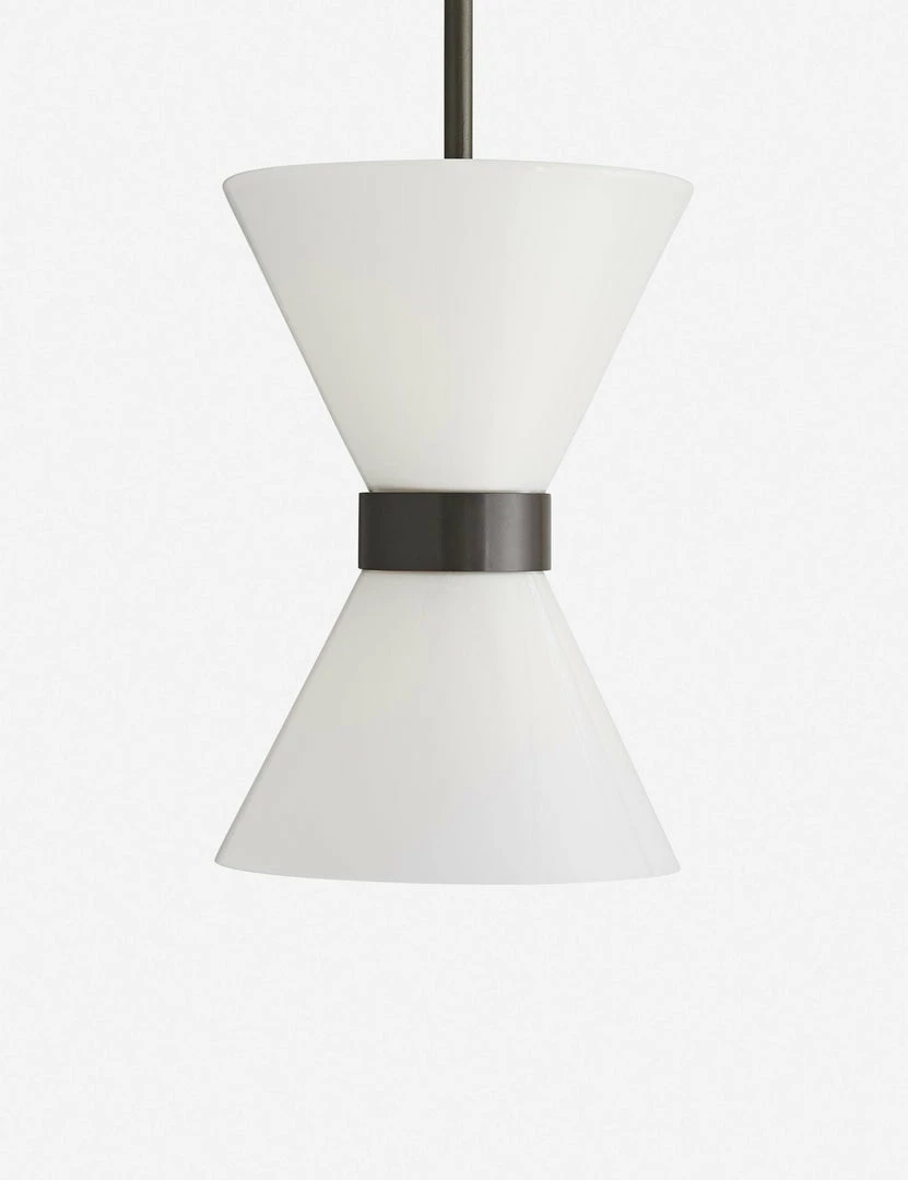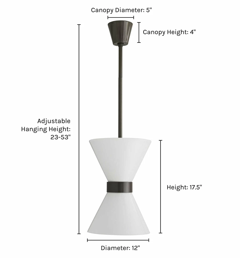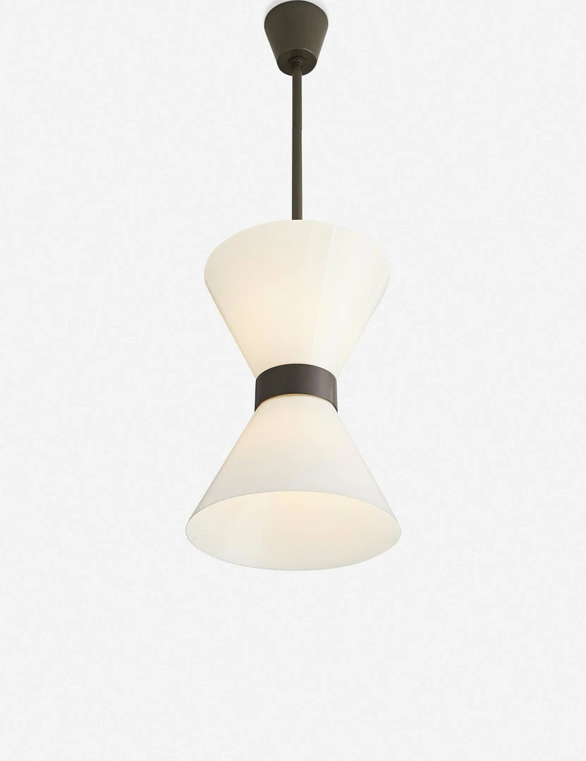 A modern update to the classic hourglass pendant, featuring opal glass shades that exude a warm glow. Designed for both indoor and outdoor use for extra versatility.