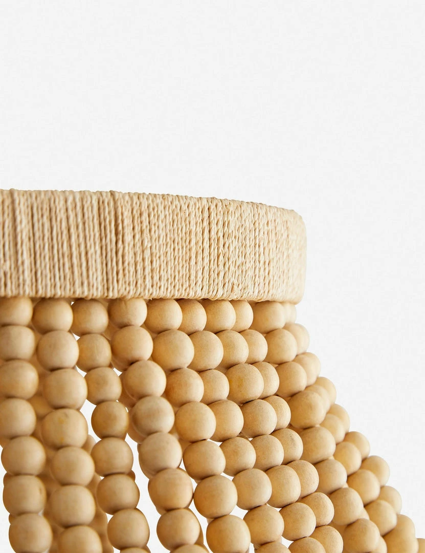 This beaded ceiling light beautifully blends artisan handcraft with the graceful appeal of an empire chandelier. Crafted from natural wood and abaca rope, and featuring an airy, open-weave design, this overhead lighting is perfect to layer into spaces with lots of textural elements, warm neutrals, and striking accents.