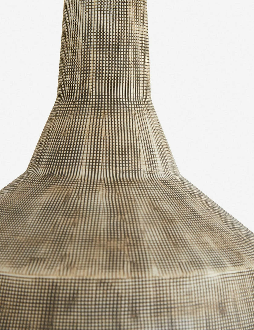 The perfect eclectic touch for any space, this lamp features a vintage-inspired shape and an intricate hand-etched pattern for a stunning visual effect. Topped with a simple shade, adding to this piece’s versatility.