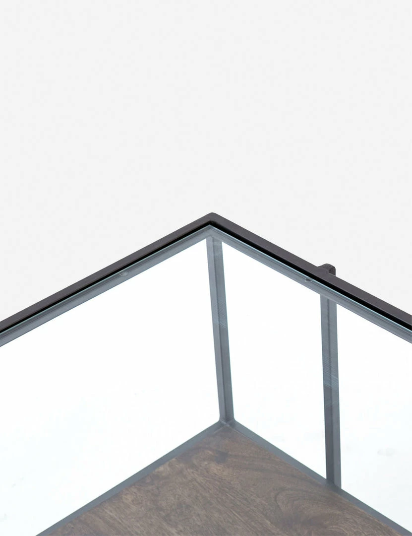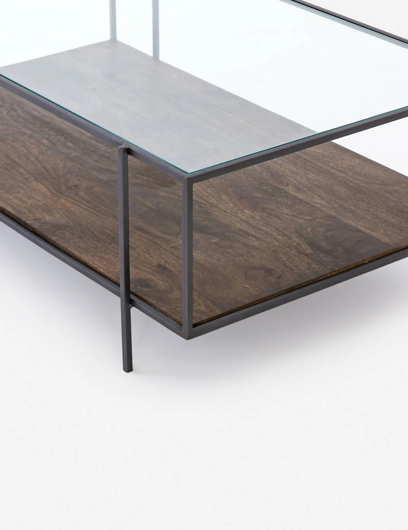 The juxtaposition between glass and wood make for an impressive display in the Asher Collection. A rectangular base features a lower wooden shelf, perfect for stacking books, while a top glass shelf allows for a centerpiece and a spot for your favorite drink.