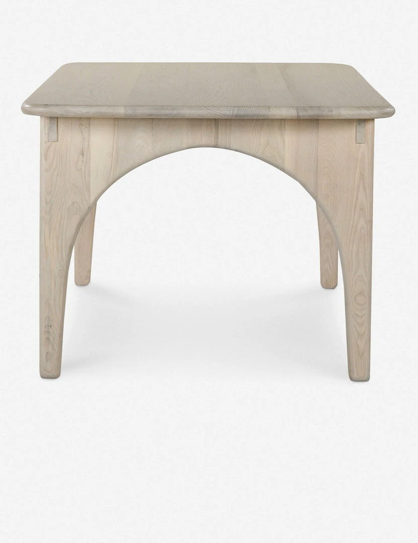 Architectural lines and rounded edges offer this ash wood dining table a soft, rustic appeal. With its artisan-inspired joinery and long design, this table is the perfect anchor in a large dining space, whether for gathered family meals or entertaining guests for a sit-down lunch or dinner.