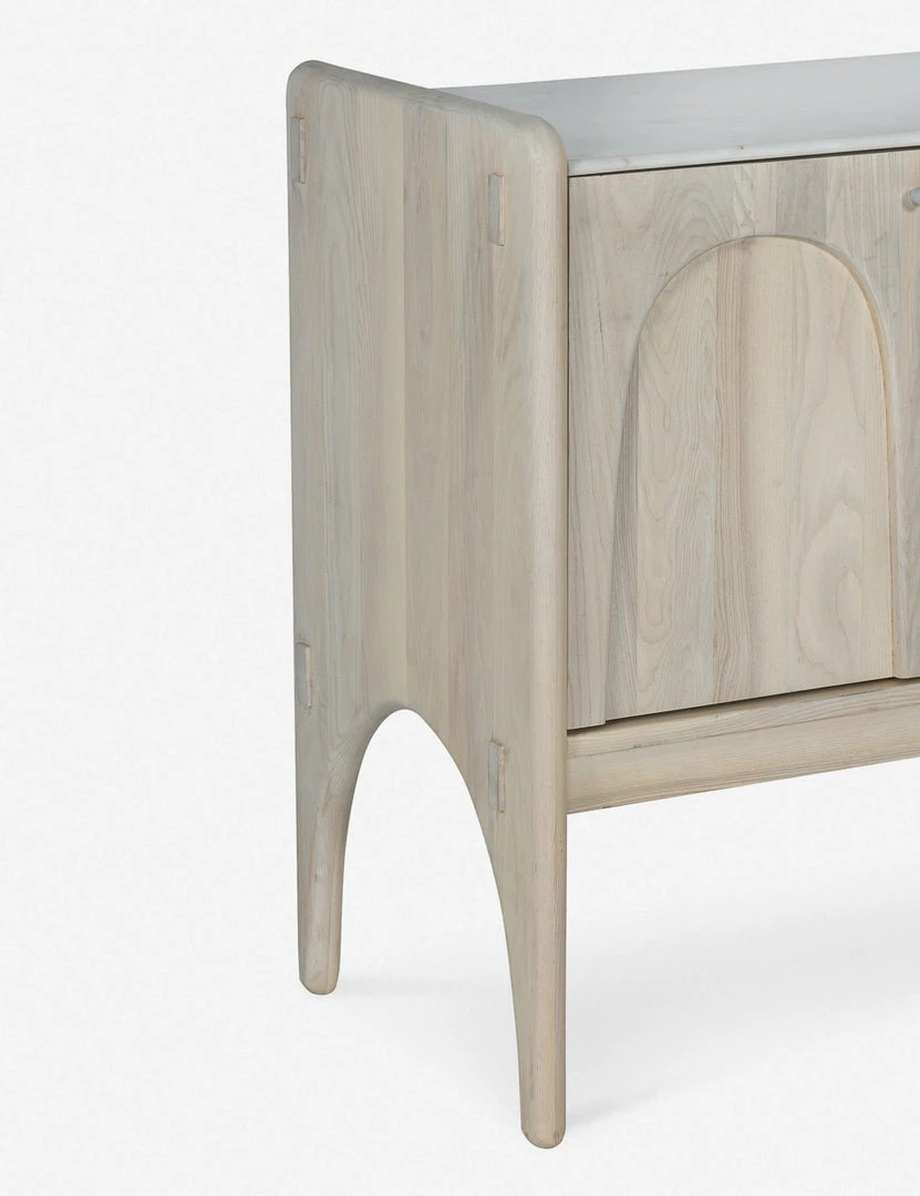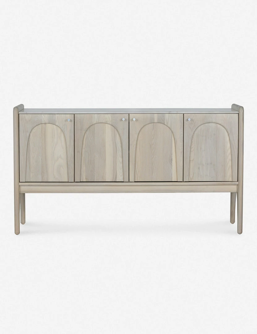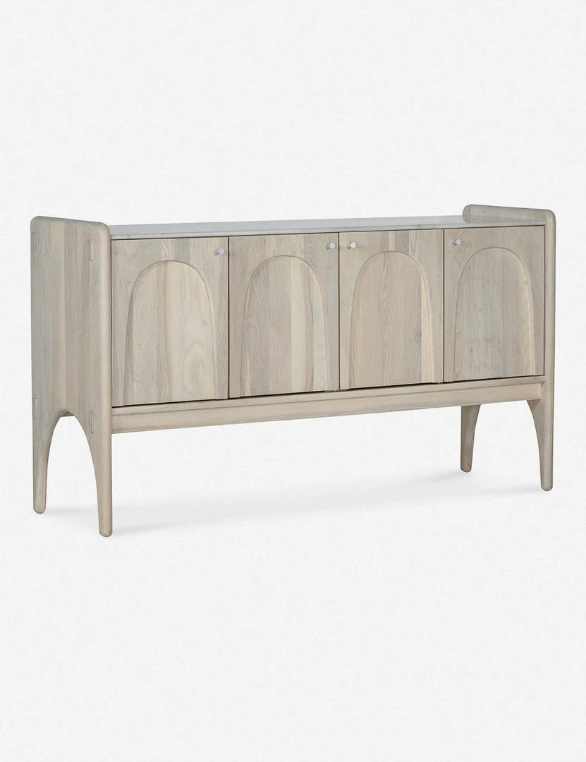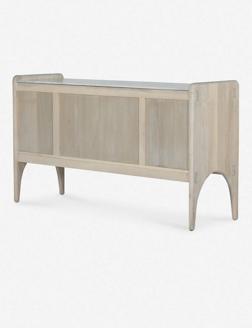 Architectural lines and rounded edges offer this ash wood sideboard a soft, rustic appeal. With its artisan-inspired joinery and polished top, this cabinet sideboard provides mixed-material appeal and spacious storage for a well-balanced transitional look, whether styled in your dining room or living space.