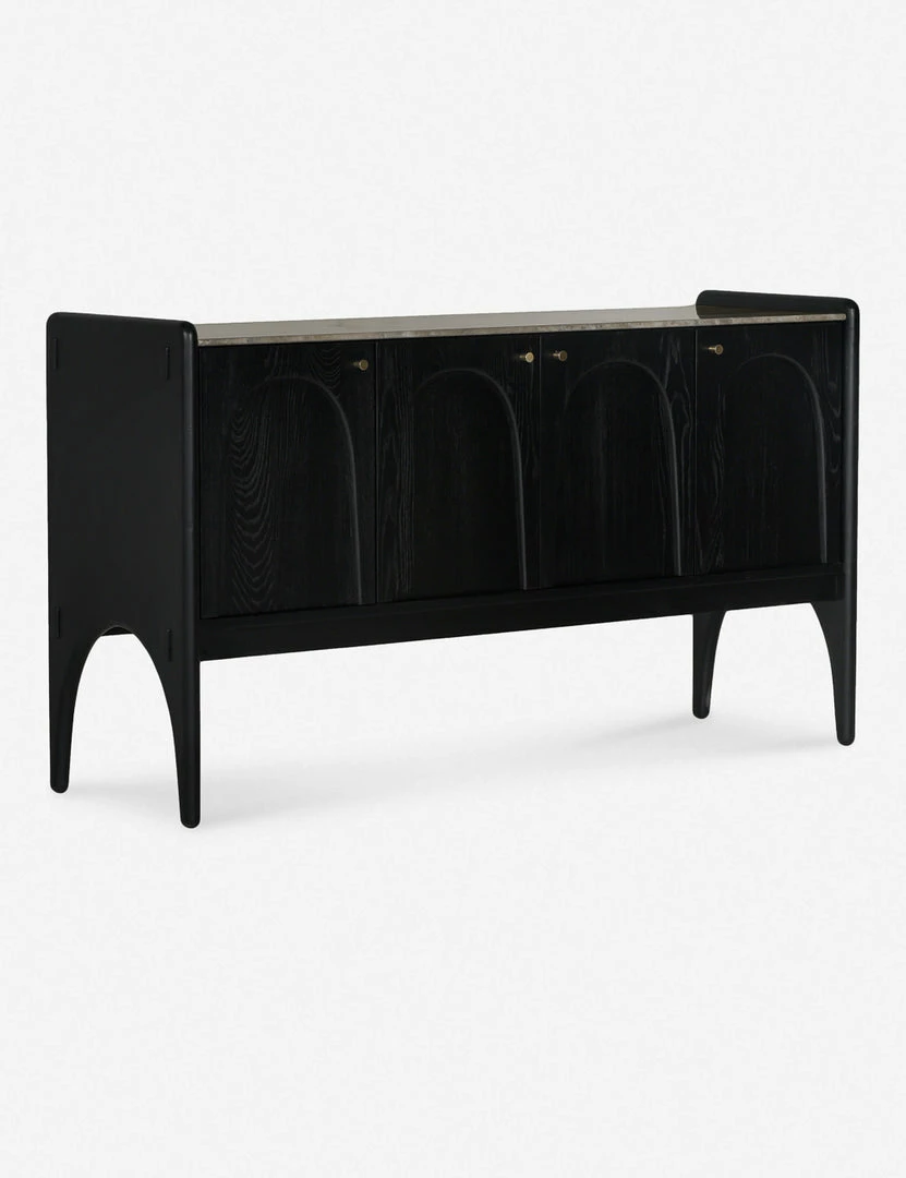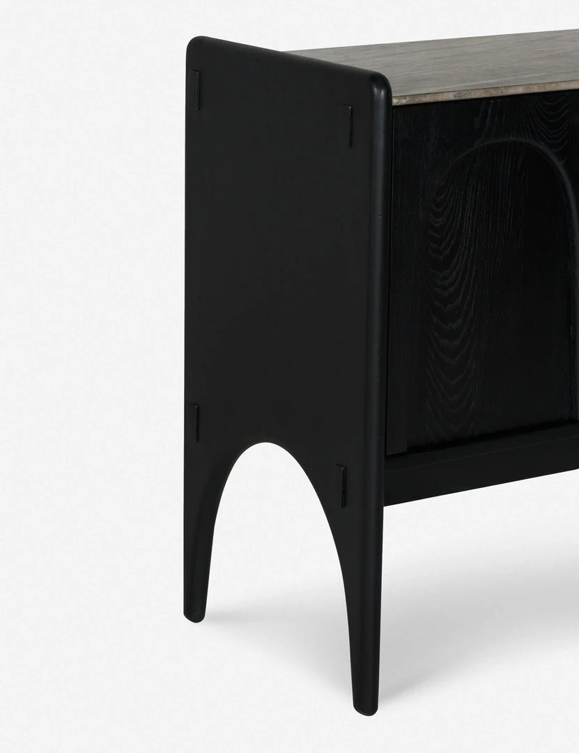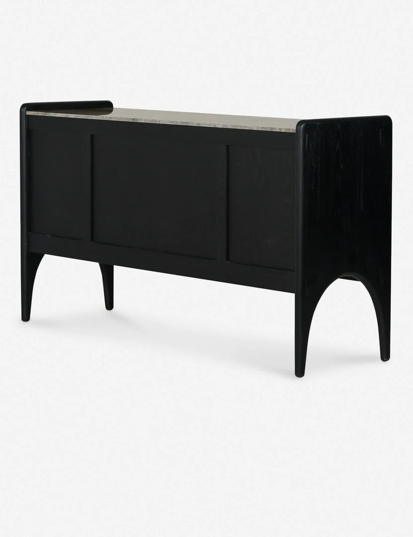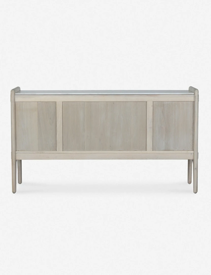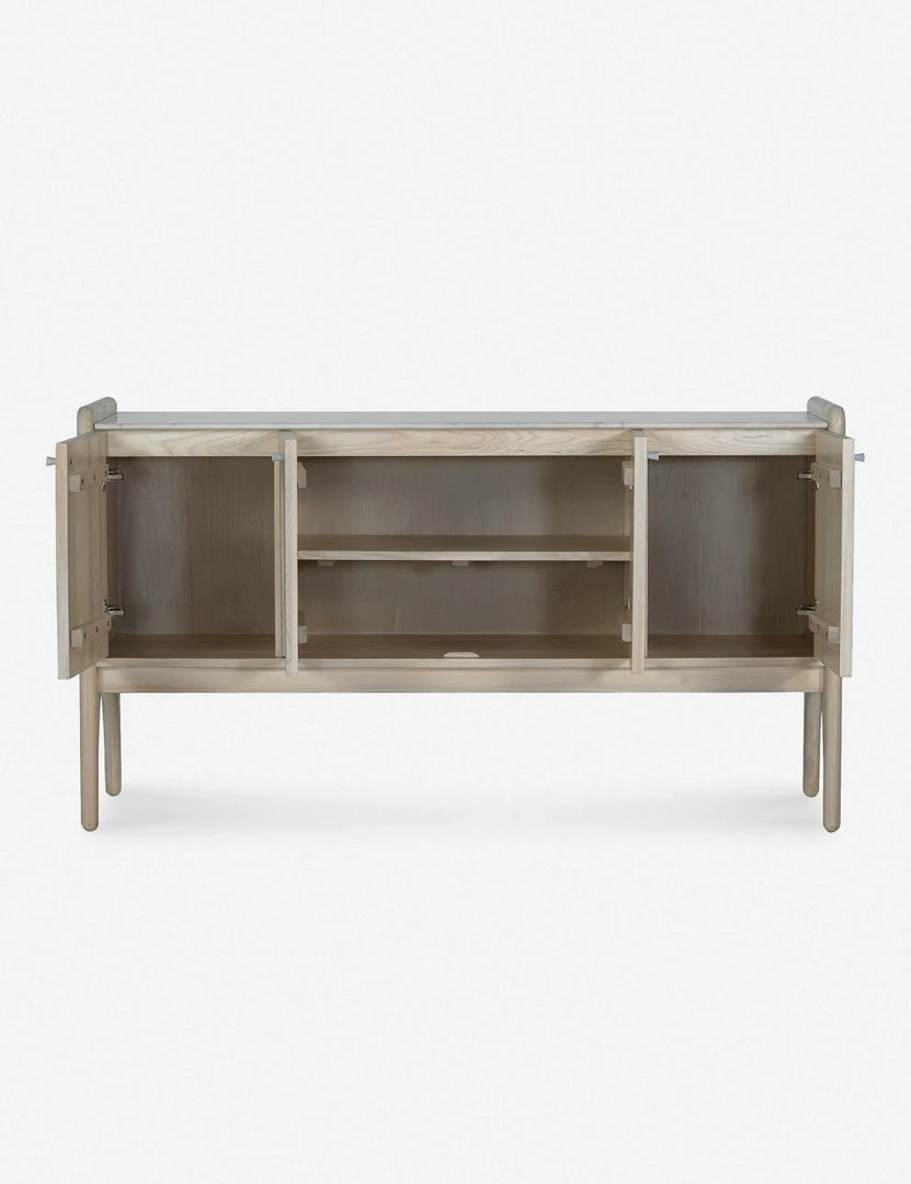 Architectural lines and rounded edges offer this ash wood sideboard a soft, rustic appeal. With its artisan-inspired joinery and polished top, this cabinet sideboard provides mixed-material appeal and spacious storage for a well-balanced transitional look, whether styled in your dining room or living space.