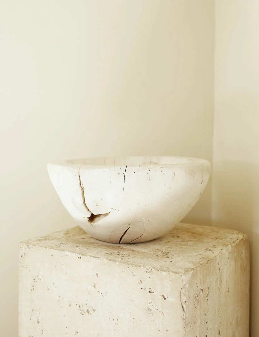 Anything but pretentious, this reclaimed wood bowl features a knotted look with a ivory finish, bringing a dose of naturally chic style to your display. Style this bowl with a vintage wood look in an entryway as a dish for keys.