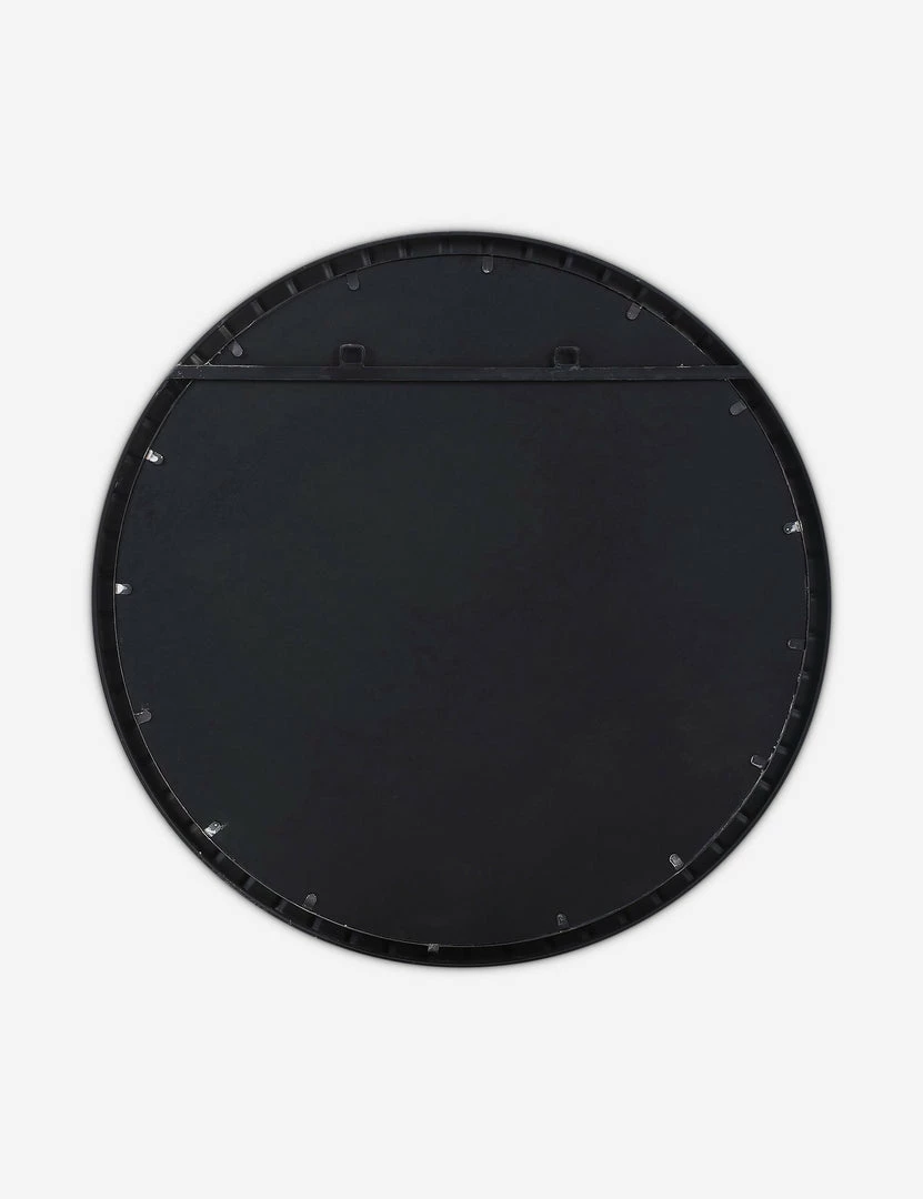 The textural ridges and a slightly distressed matte black finish of this round wall mirror layer in a bit of industrial design. Made from iron, its antiqued look adds rich character into your space. Style this decorative mirror above a sofa, sideboard, or console table.