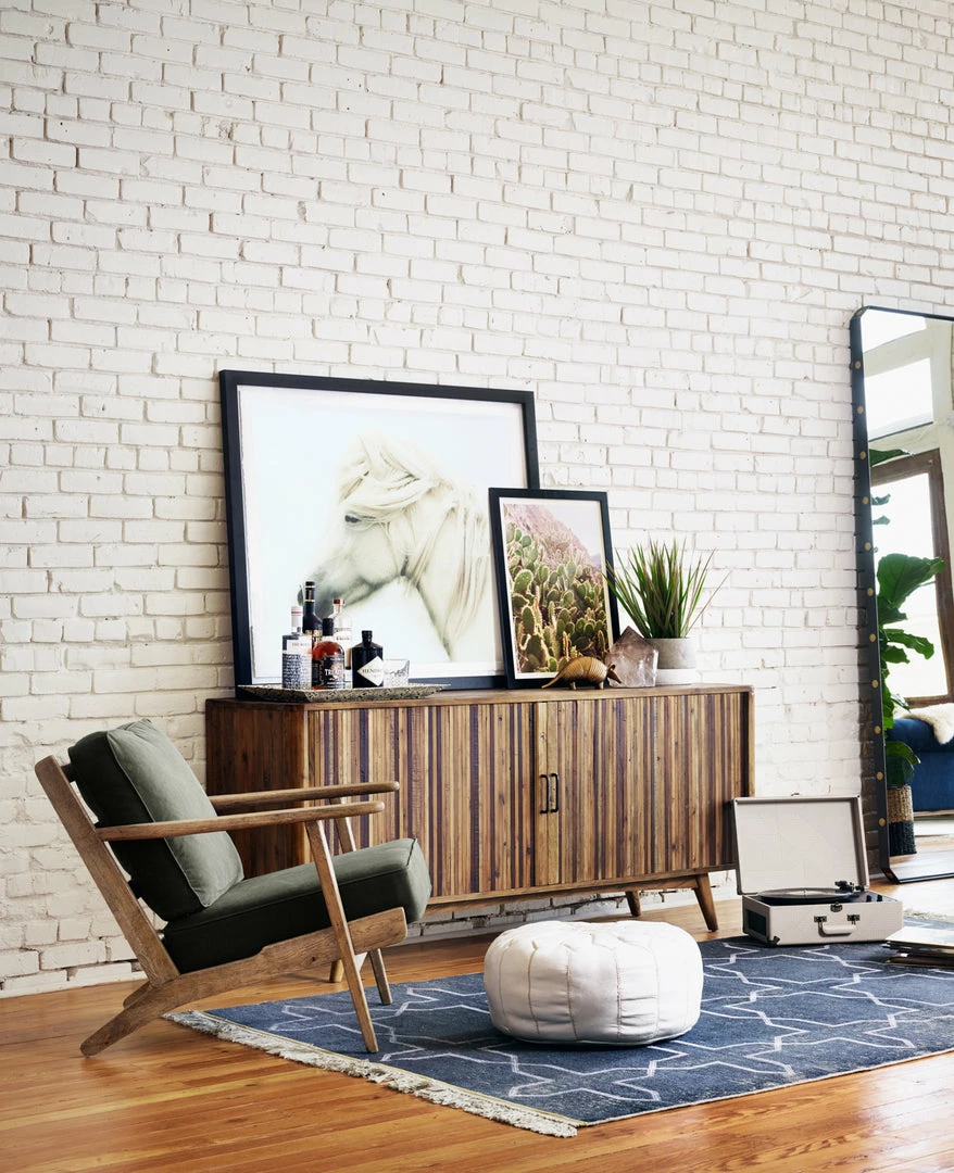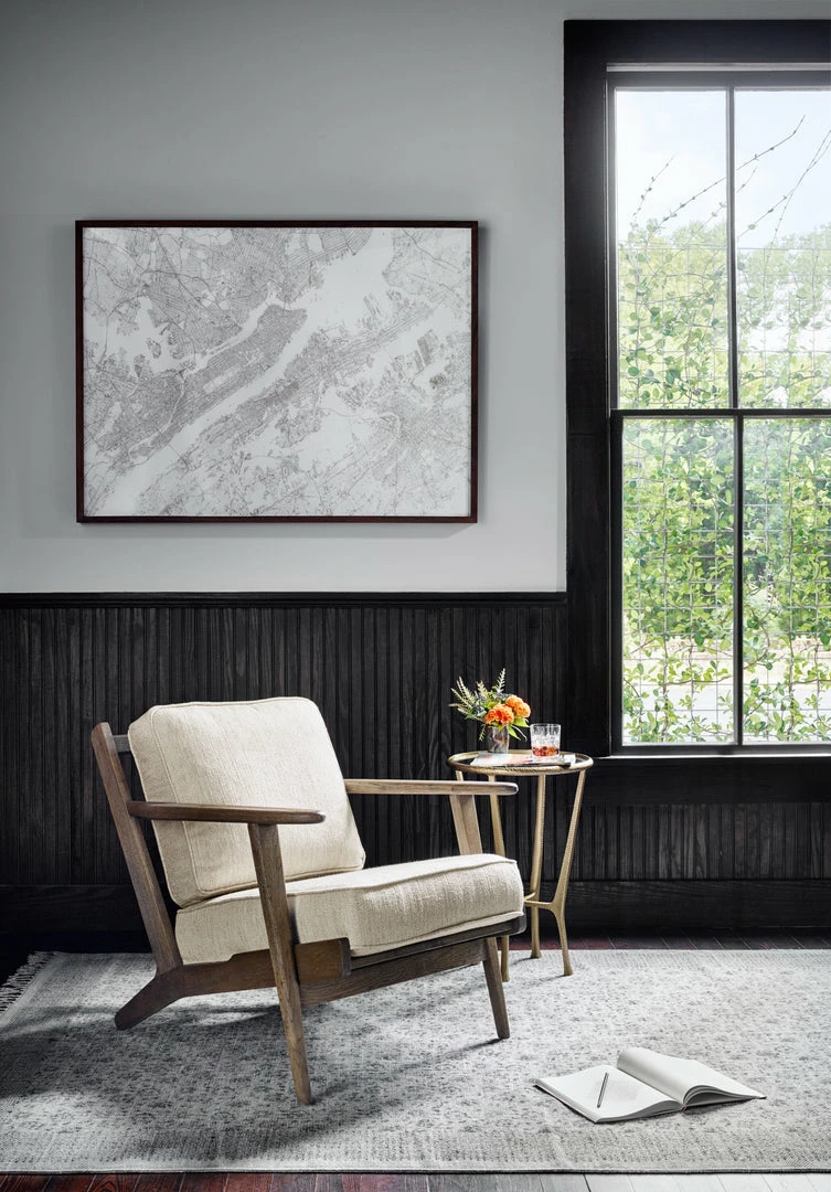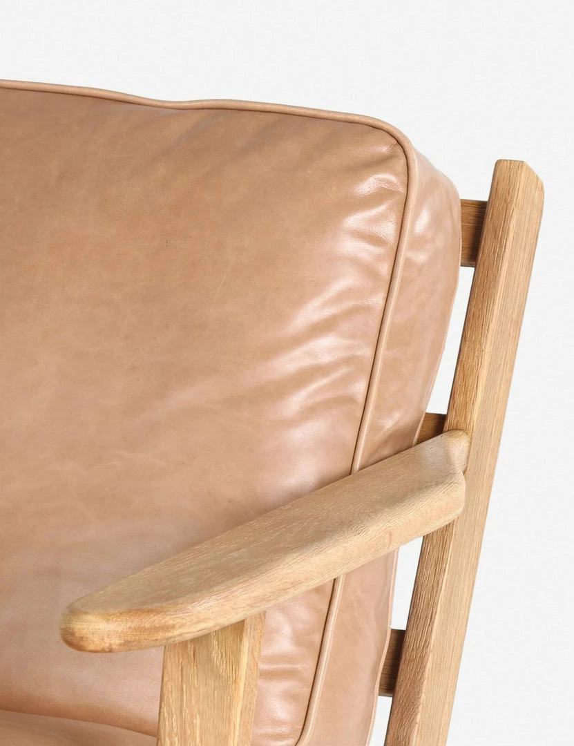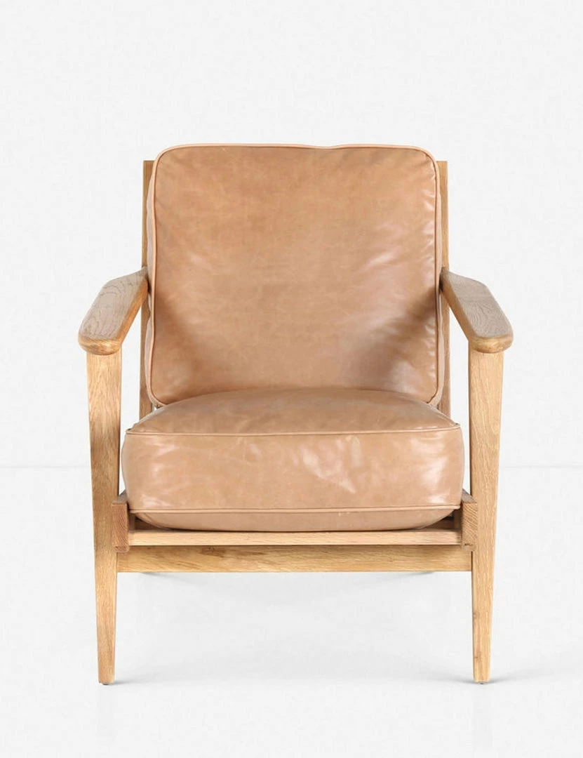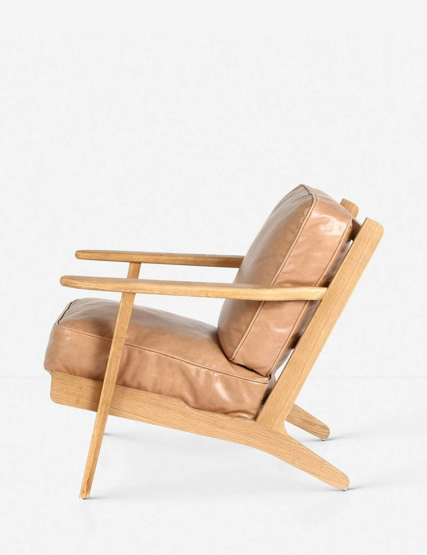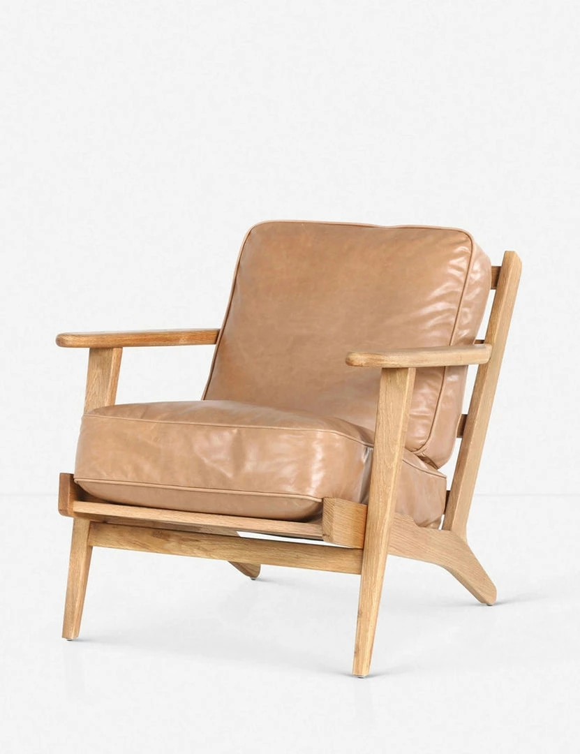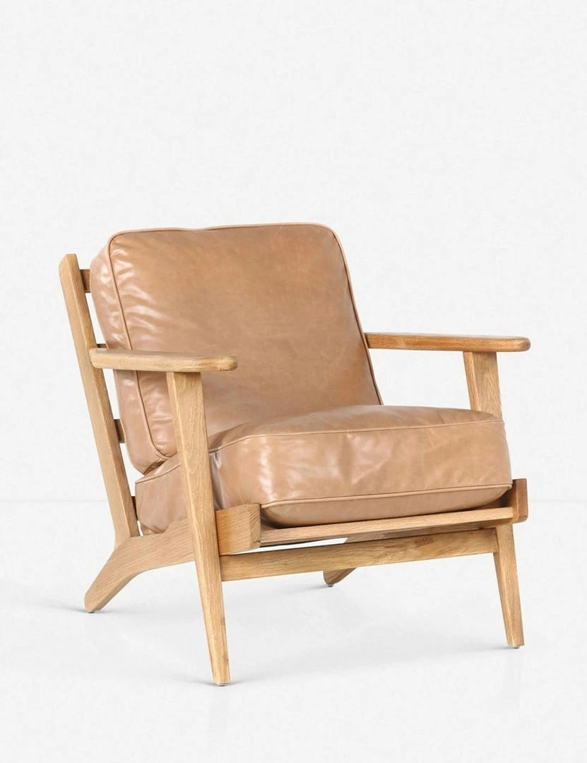 With an inviting silhouette that’s perfect for mid-century or California modern rooms, the Austin lounge chair features plush leather cushions and a light oak frame.