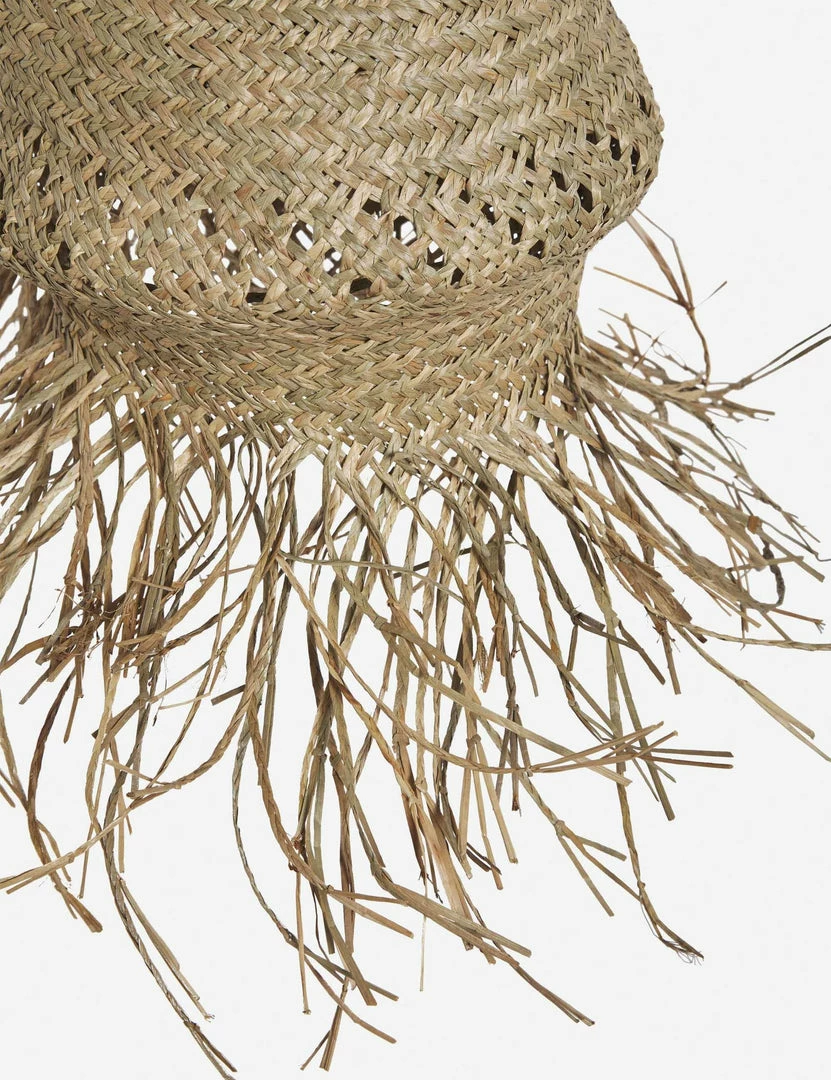 Featuring a bell-shaped shade woven with natural raffia fibers, this ceiling light fixture take organic texture to another level. Unfinished ends give this pendant light a statement-making impact in your entry, dining room or living room.