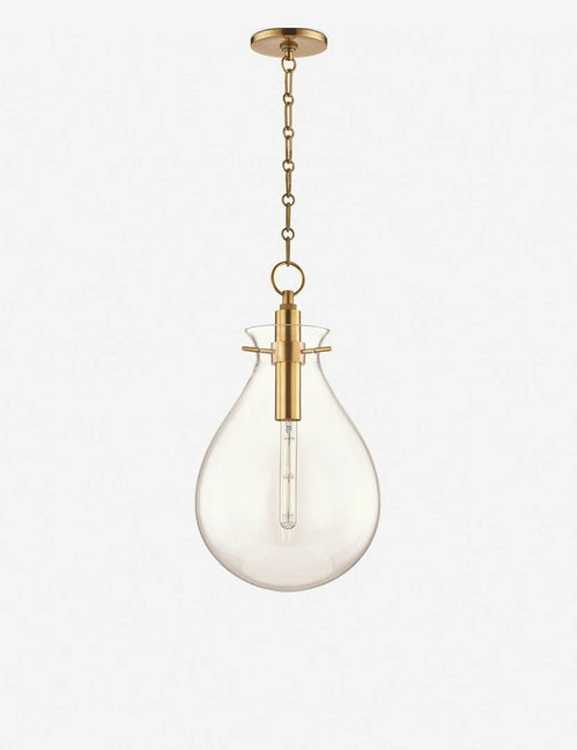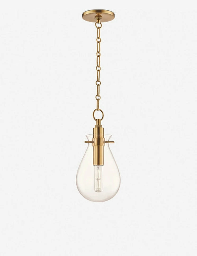 From interior designer and home-makeover master Becki Owens comes a lighting collection that embodies her simple, elegant style. This gold brass and glass pendant light features clean lines, architectural shapes and a touch of industrial inspiration for an effortless, contemporary California look to any kitchen over a narrow island or sink or a bedside table.