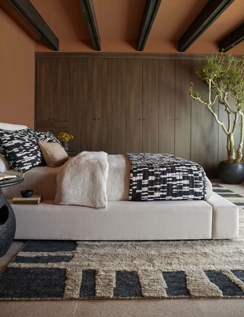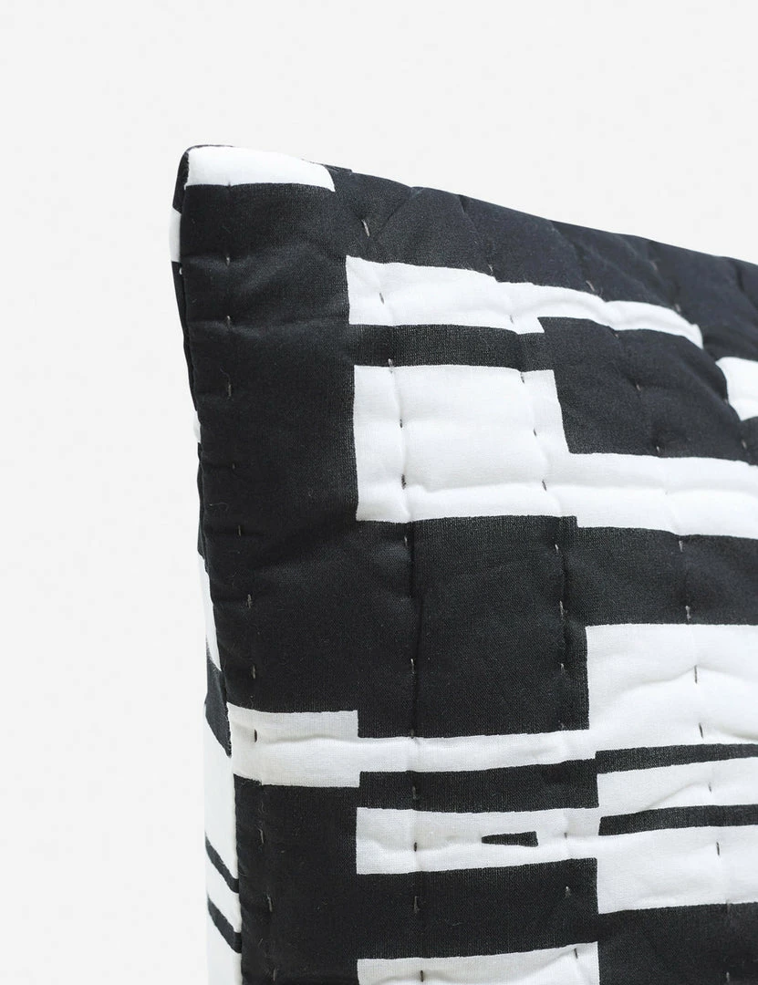 Add a dynamic touch with this quilted pillow sham, which lends abstract geometric design and a monochromatic color palette in natural and black. Woven from lightweight cotton voile, this sham is an ideal layering piece to evolve the look of your bed. Pair it with its matching coverlet or style it on its own to pop against neutral bedding.