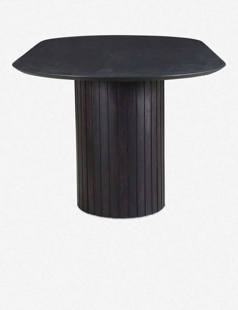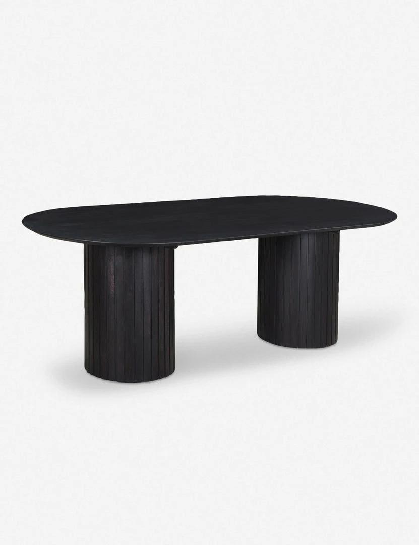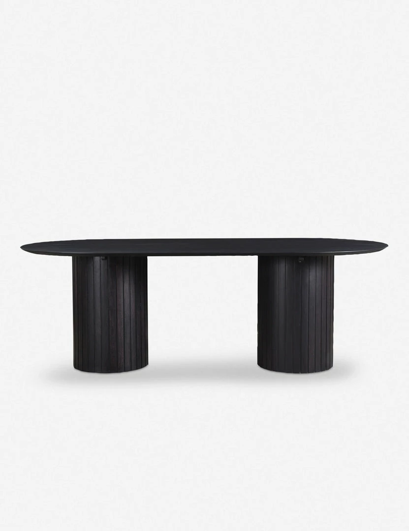 Set an elegant foundation for your dining room with this acacia wood table. The sleek oval top sits on two pillar legs with subtle ribbing to accentuate its elemental form. We love the transitional appeal of this modern dining table, whether dressed for entertaining or simple family meals.