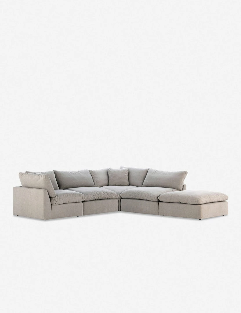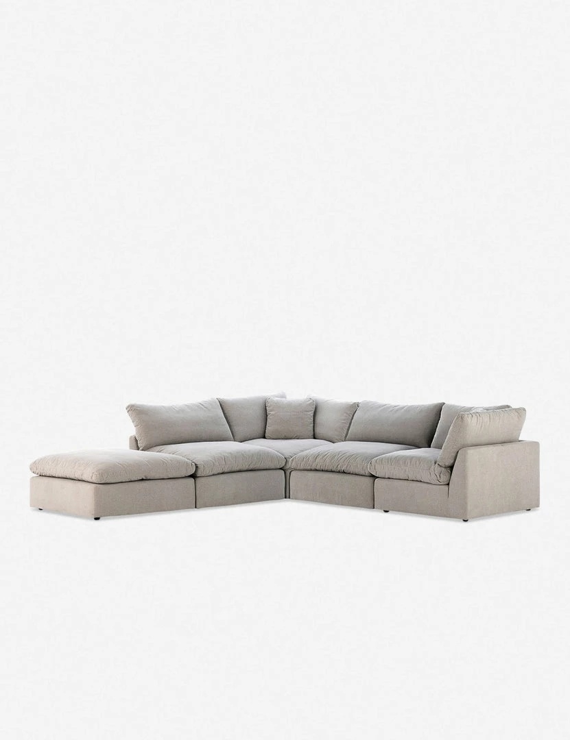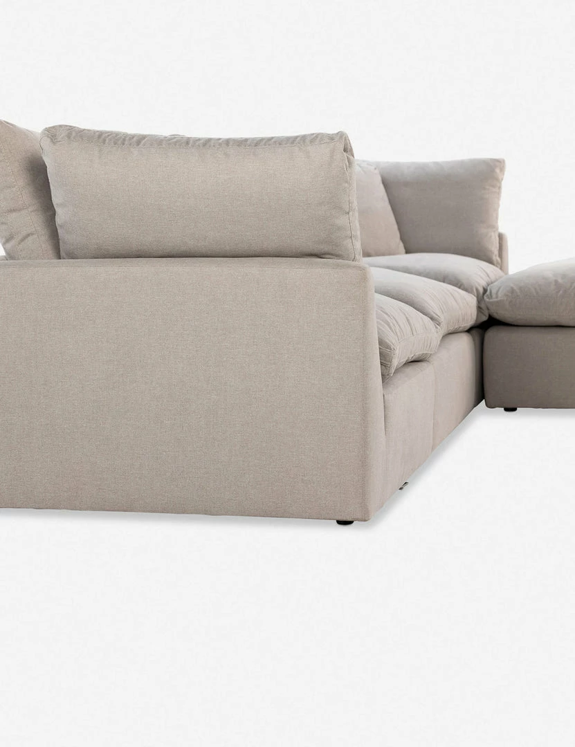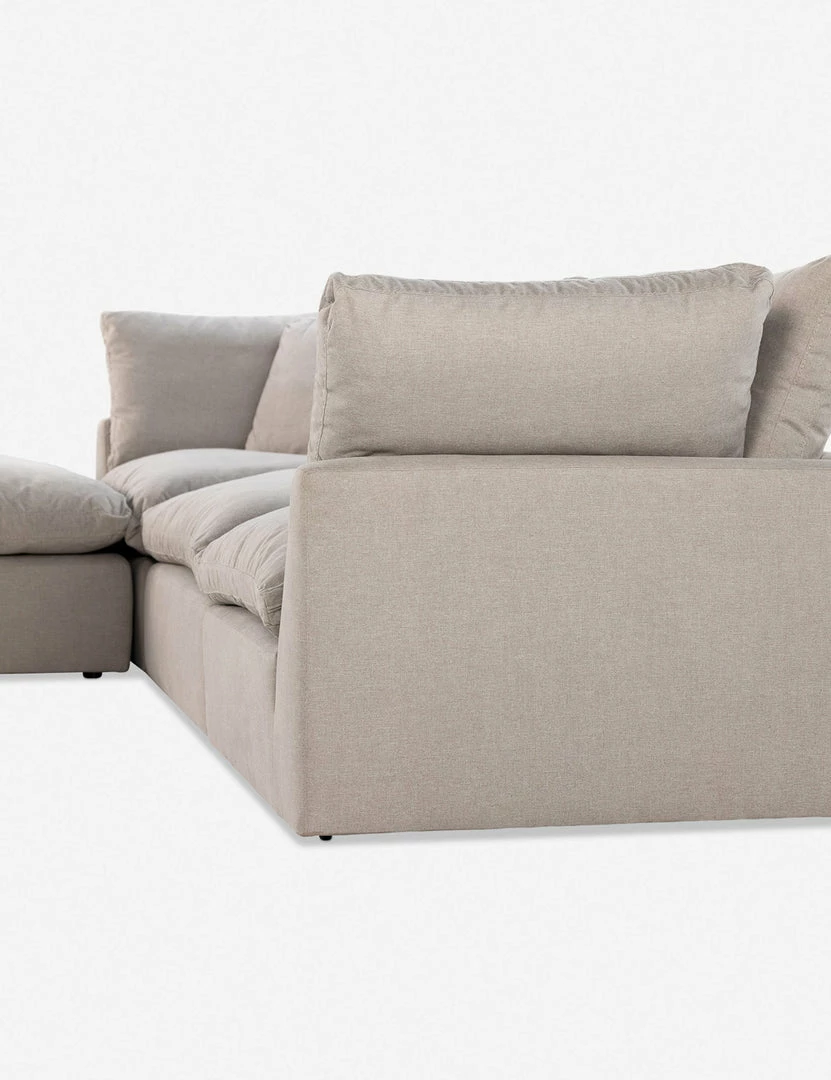 Deep seats and pillow cushions bring a laid-back feel to this uber-comfy sectional sofa. We love the soft yet durable upholstery on this sectional for an elevating everyday appeal in a family room or lounge.