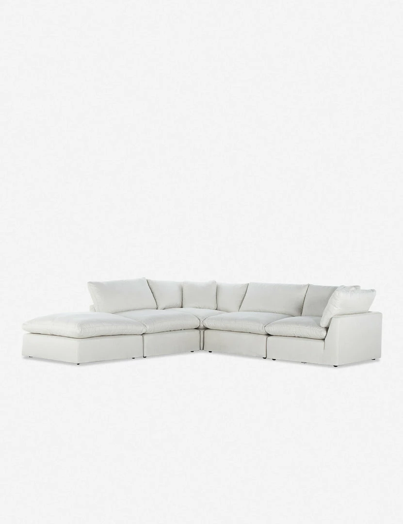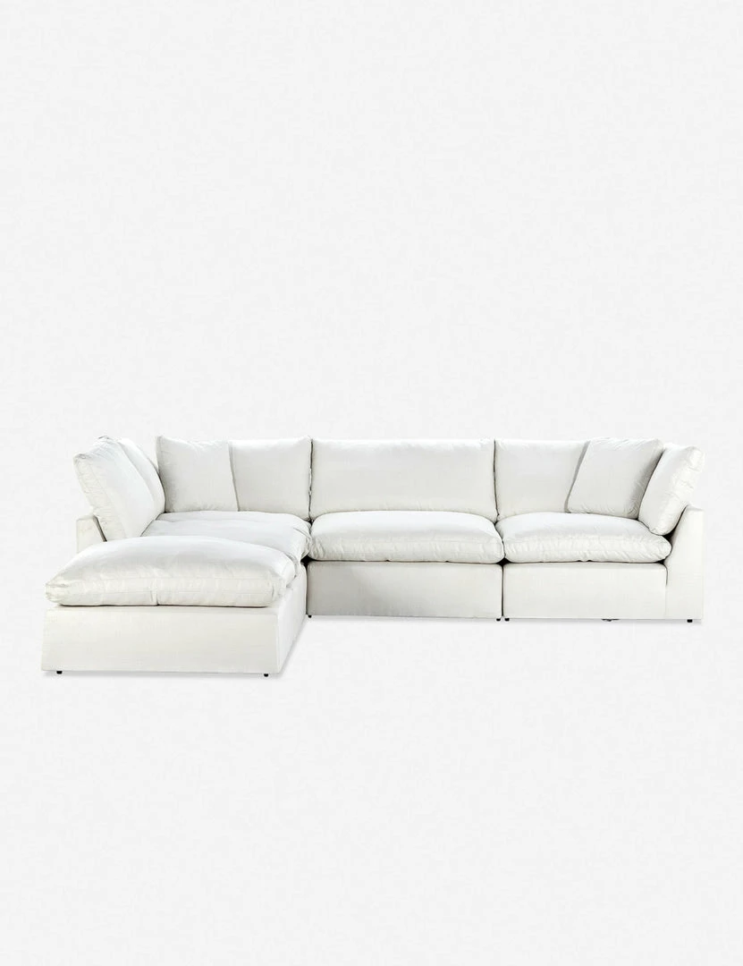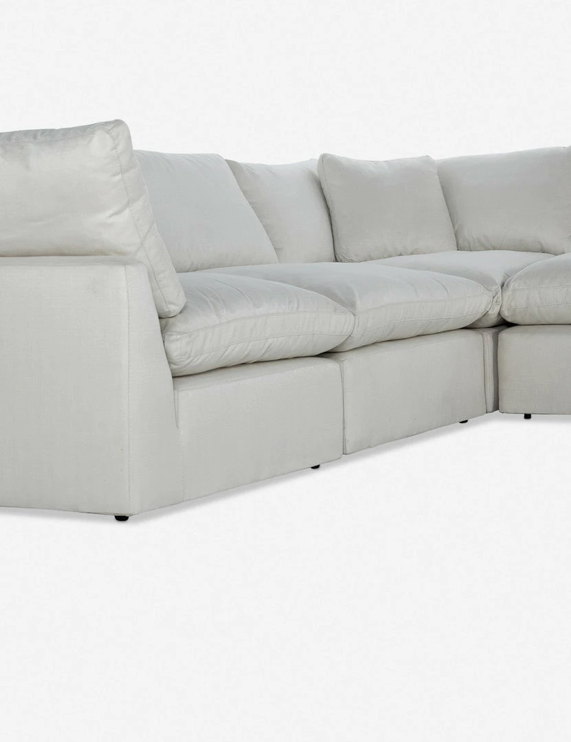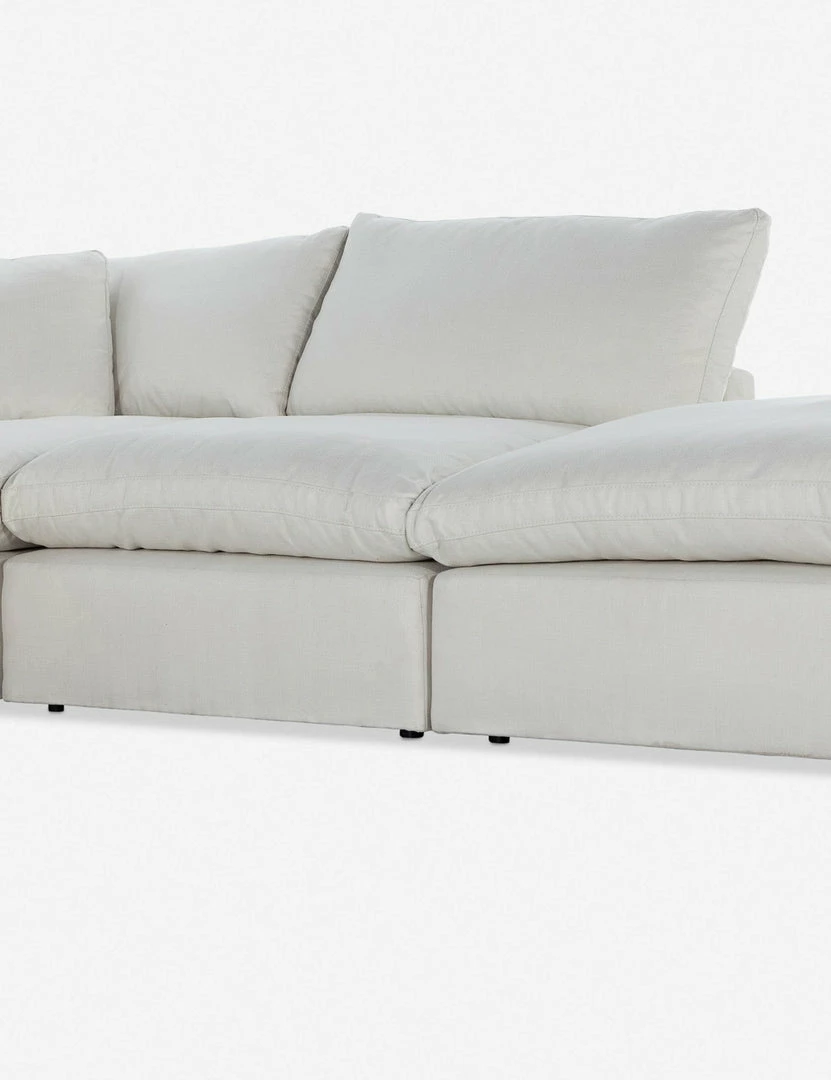 Deep seats and pillow cushions bring a laid-back feel to this uber-comfy sectional sofa. We love the soft yet durable upholstery on this sectional for an elevating everyday appeal in a family room or lounge.