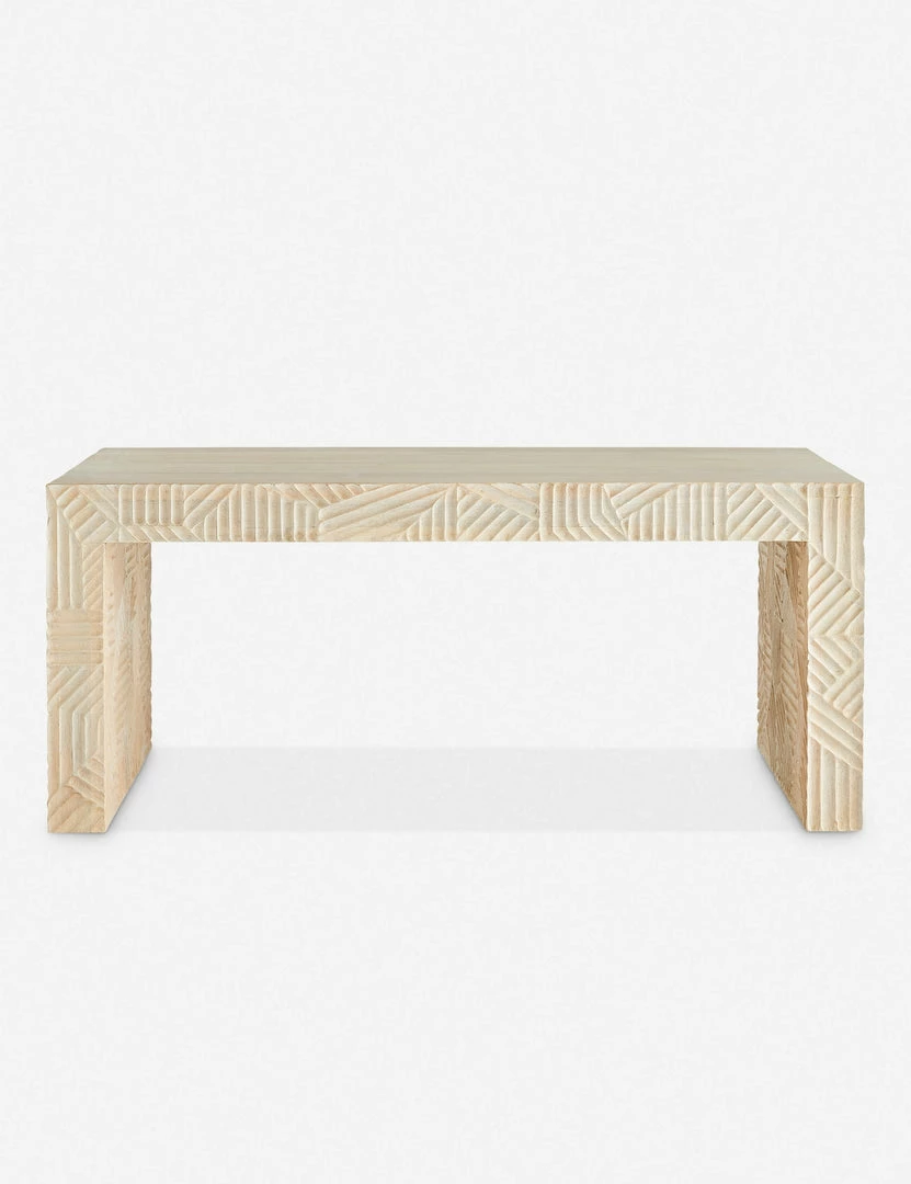 Intricately carved for a dramatic textured effect, this wooden coffee table is anything but boring. The simple form offers added versatility: style this piece as a bench for extra seating or use it as a coffee table in your modern living room.