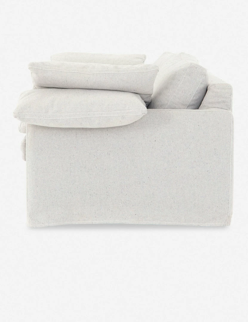 A performance fabric upholstery woven from upcycled denim adds a light cotton touch and tons of extra-soft cushions make this sofa an irresistibly soft place to land. Style this cozy couch in your family room or a laid-back living space for what is sure to be your new favorite spot in the house.