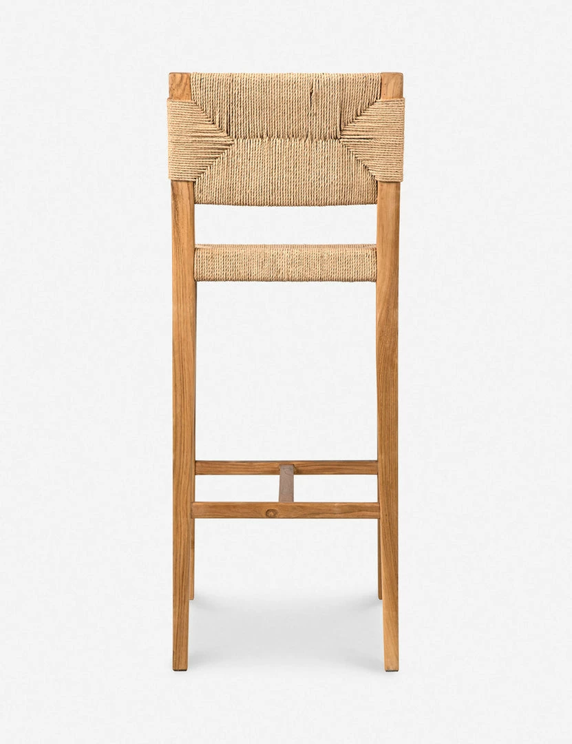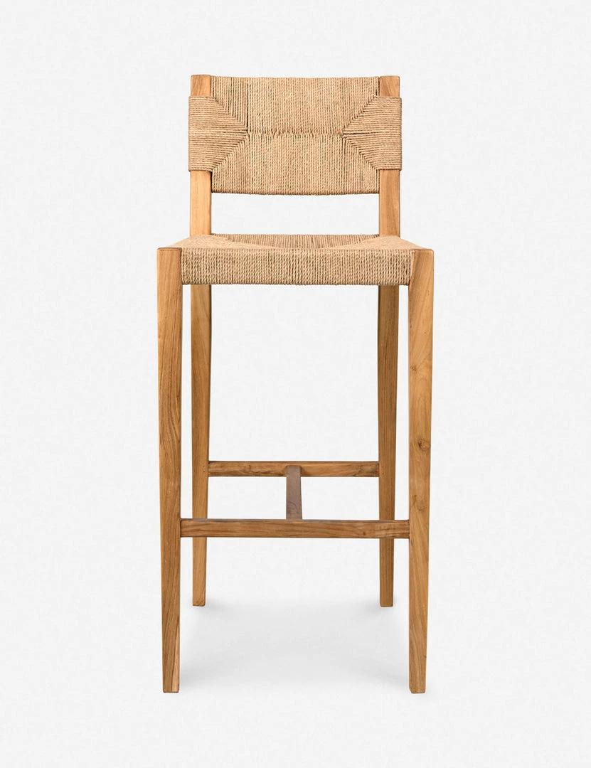 A slim-cut teak wood frame finished with a woven danish cord seat to fashion this stool for effortless appeal and versatile styling potential. Add some textural character into a collected space or complete a coastal look with this casually elevated bar stool.