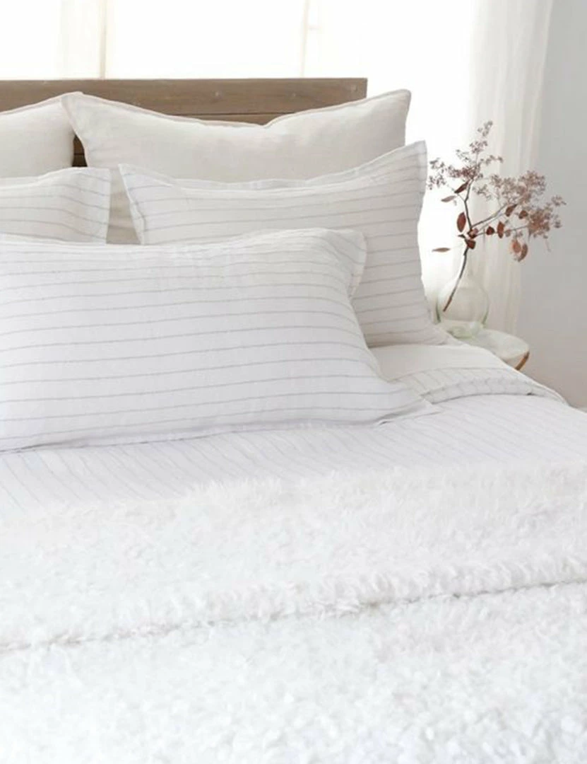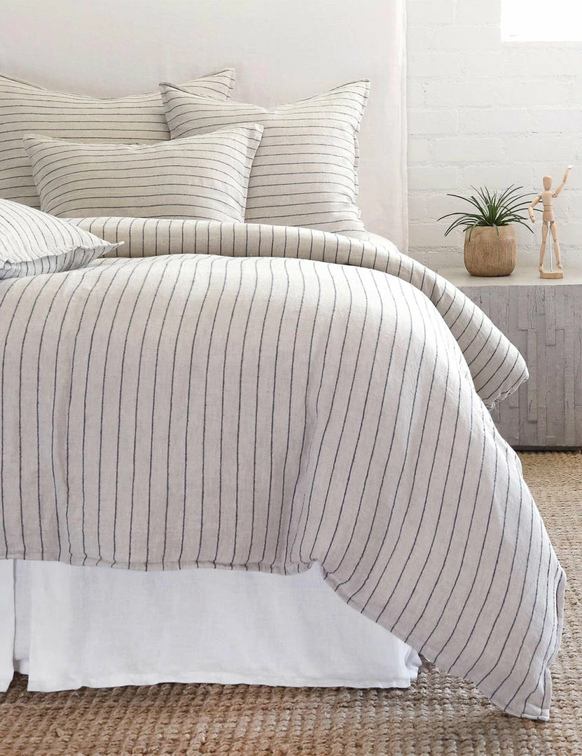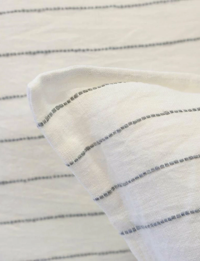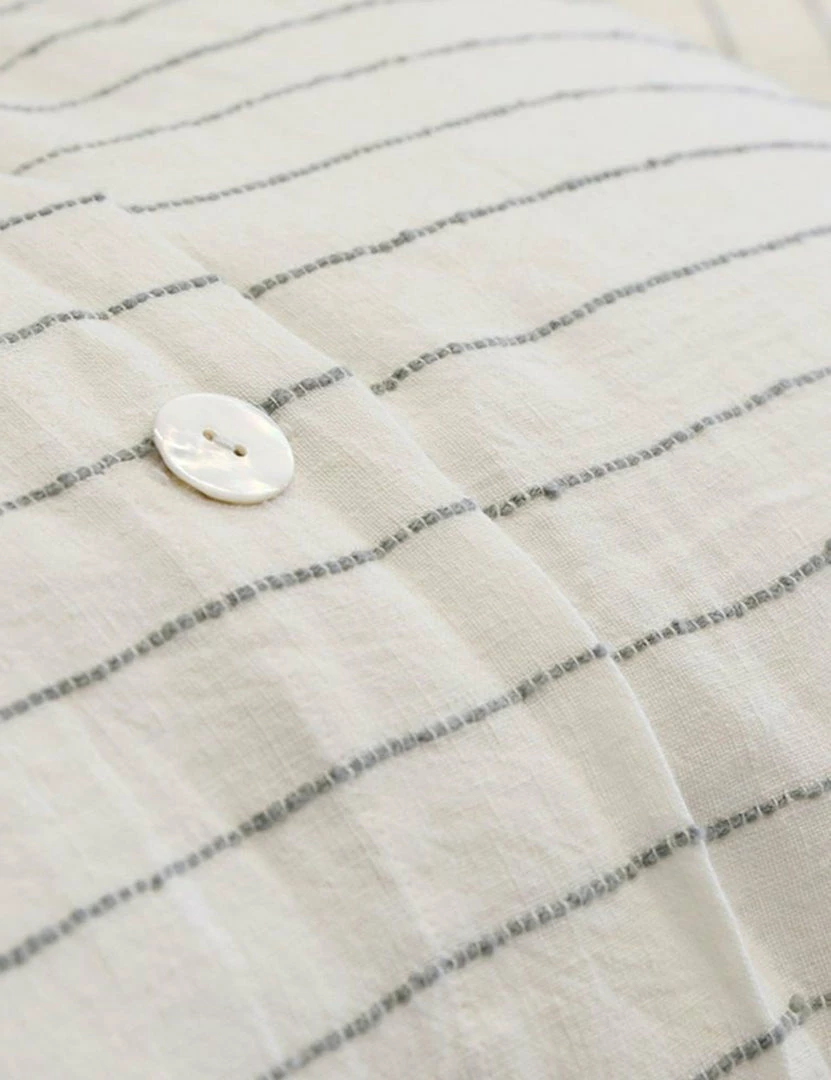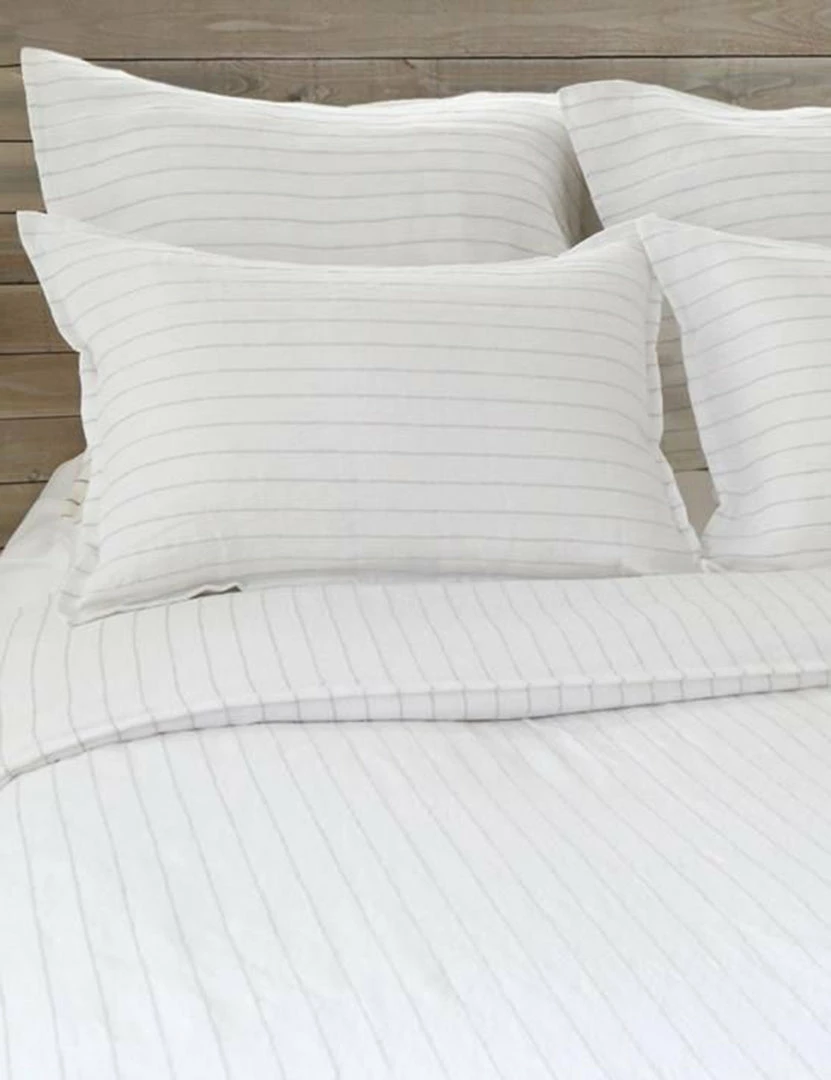 This soft, lived-in linen sham is hand-loomed with an interwoven stripe and subtle flange edging for minimalist and clean style. Finish your relaxing haven with the complementing duvet cover or mix in with other linen pieces for a modern boho feel.