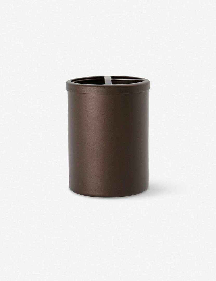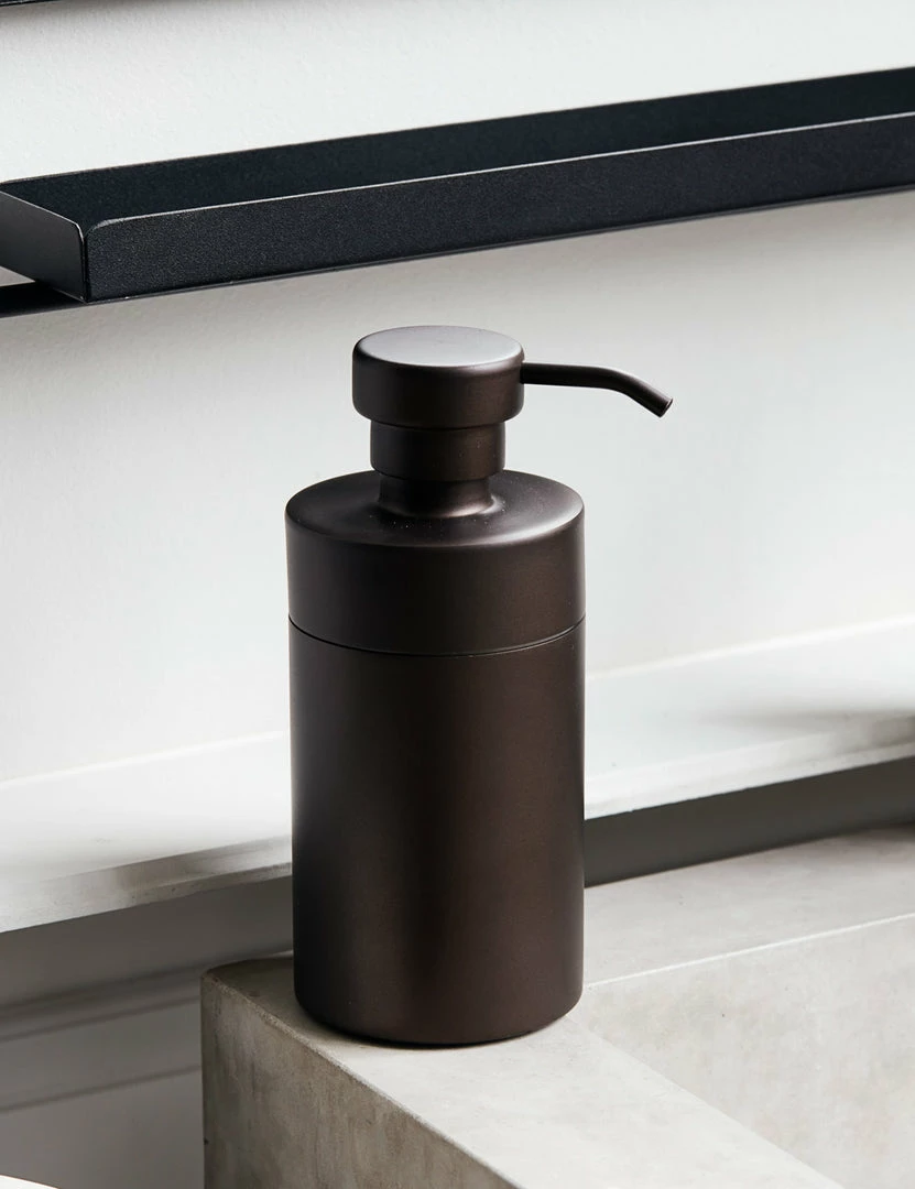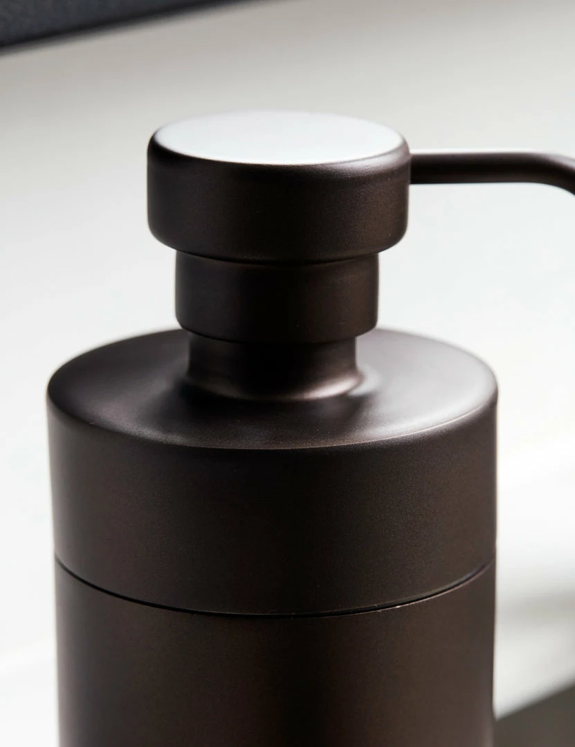 Elevate your bathroom vanity with this metal tumbler and soap dispenser. Its matte brown finish offers a rich luster perfect for transitional decor in a guest bath or en suite.