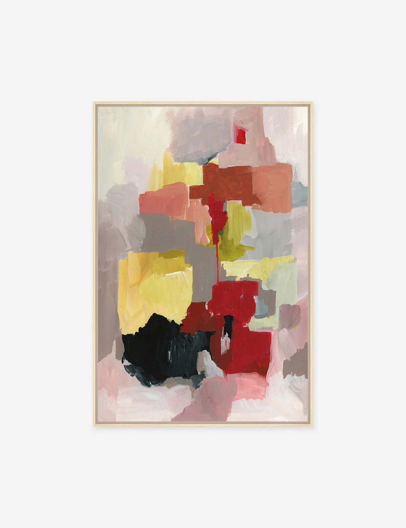Modern and abstract, this wall art piece adds brightness and color to your home design. Playing with layered strokes and contrasting colors, this piece is perfect for any space.