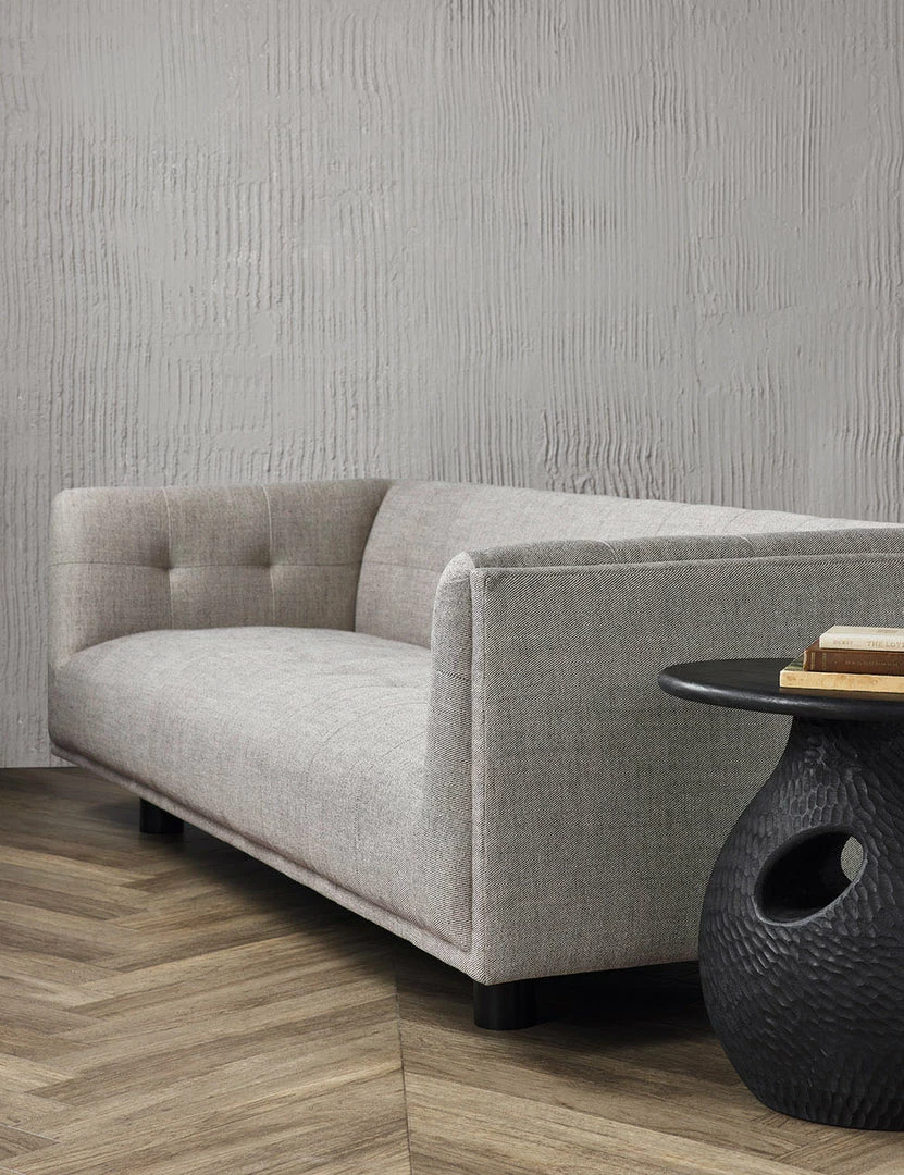 Spread out in style with this chic, spacious sofa. The plush, tufted seat and back are upholstered with woven, heather fabric for a fresh look full of traditional notes. In a dynamic neutral tone, this couch is a versatile fit for an evolving space or transitional decor.