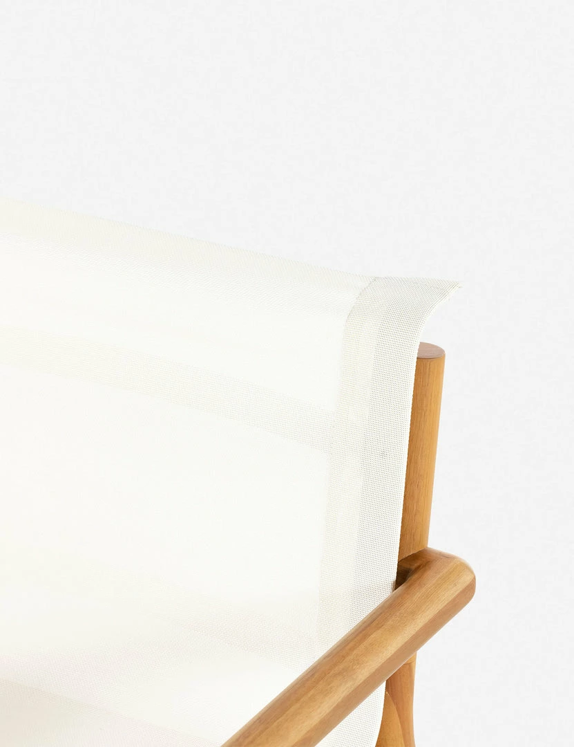 Clean, essential design offers a refined outdoor style in this dining chair. The eucalyptus frame is highlighted by a warm finish and fitted with a quick-drying mesh seat. Bring an airy, practical appeal to your outdoor table with this dining seat armchair.