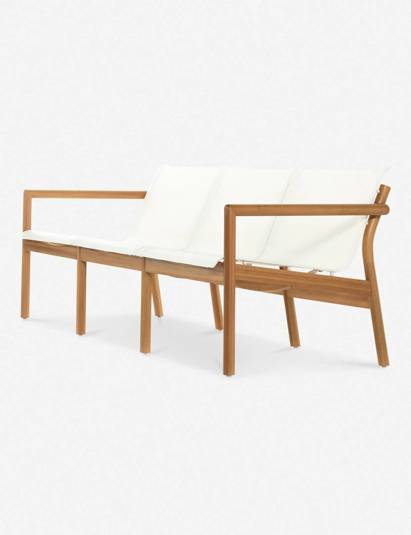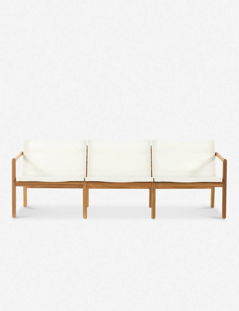 Clean, essential design offers a refined outdoor style in this sofa design. The eucalyptus frame is highlighted by a warm finish and fitted with quick-drying mesh seats. Style this upholstered bench for couch-style seating with airy sophistication.
