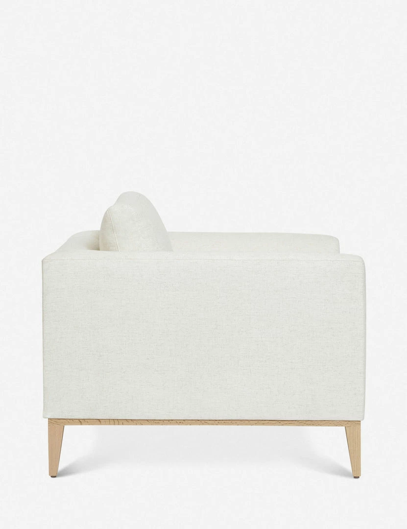 The Charleston collection boasts sleek minimalism for defined, architectural style. Sprawl out in luxurious ease bolstered by the sizable arms and deep plush seat of this lounge chair. A natural oak base complements its ivory upholstery and tailored profile for a refined look that will elevate a transitional space.