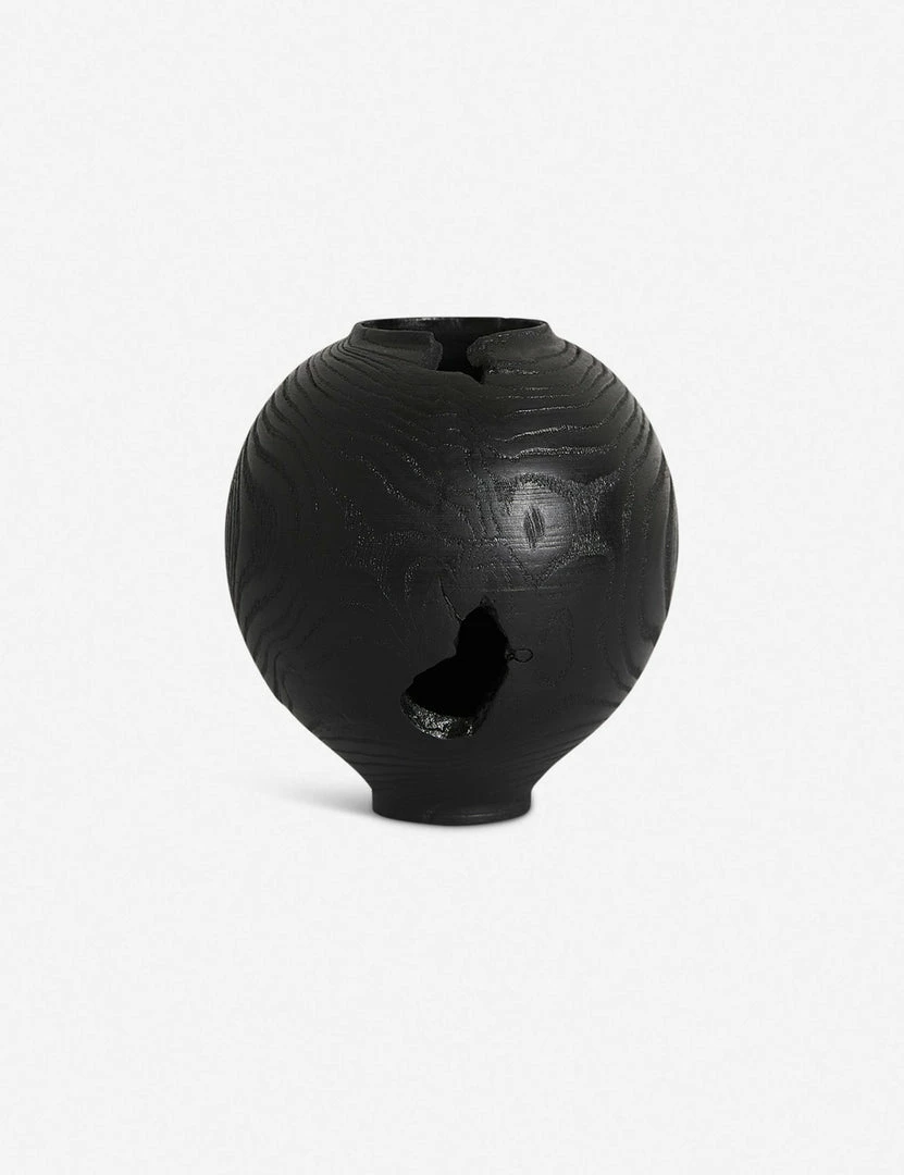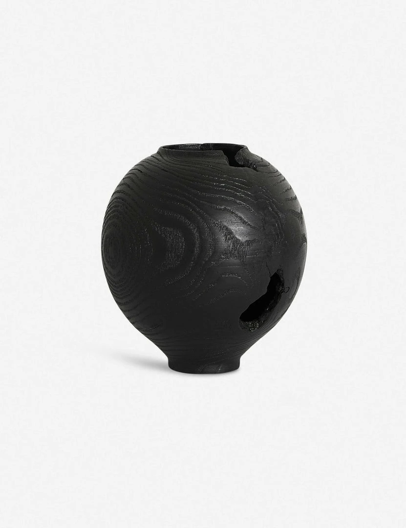 Namu Home Goods celebrates the raw beauty of nature, unearthing materials and traditional handcraft processes that offer uniquely organic qualities. Made from Korean Mahogany, a charred finish highlights the dramatic natural grain of this jar to create a stunning impact.