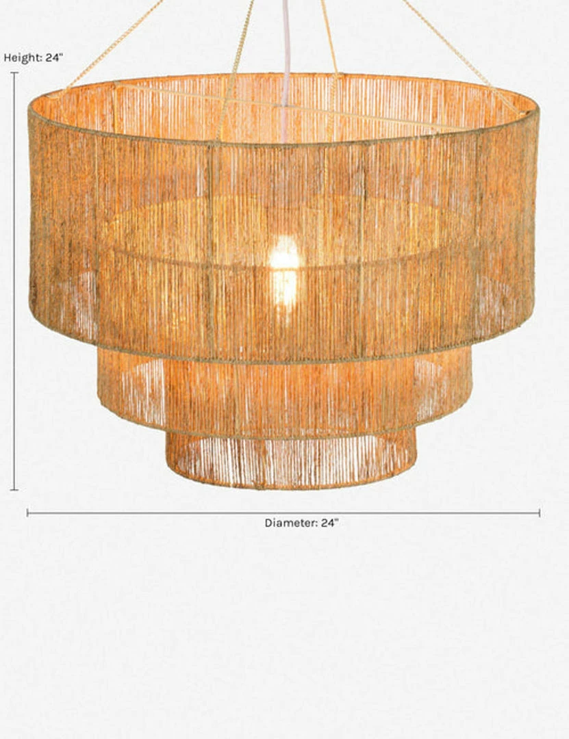 This Chavette ceiling light features the elegance of a timeless three-tier chandelier, but updated with a jute-wrapped design to add visual and tactile impact to dining rooms and living rooms alike. Make sure to style this hanging ceiling light in a tonal, minimalist space or with a layered mix of textural accents.