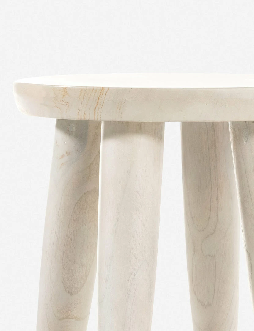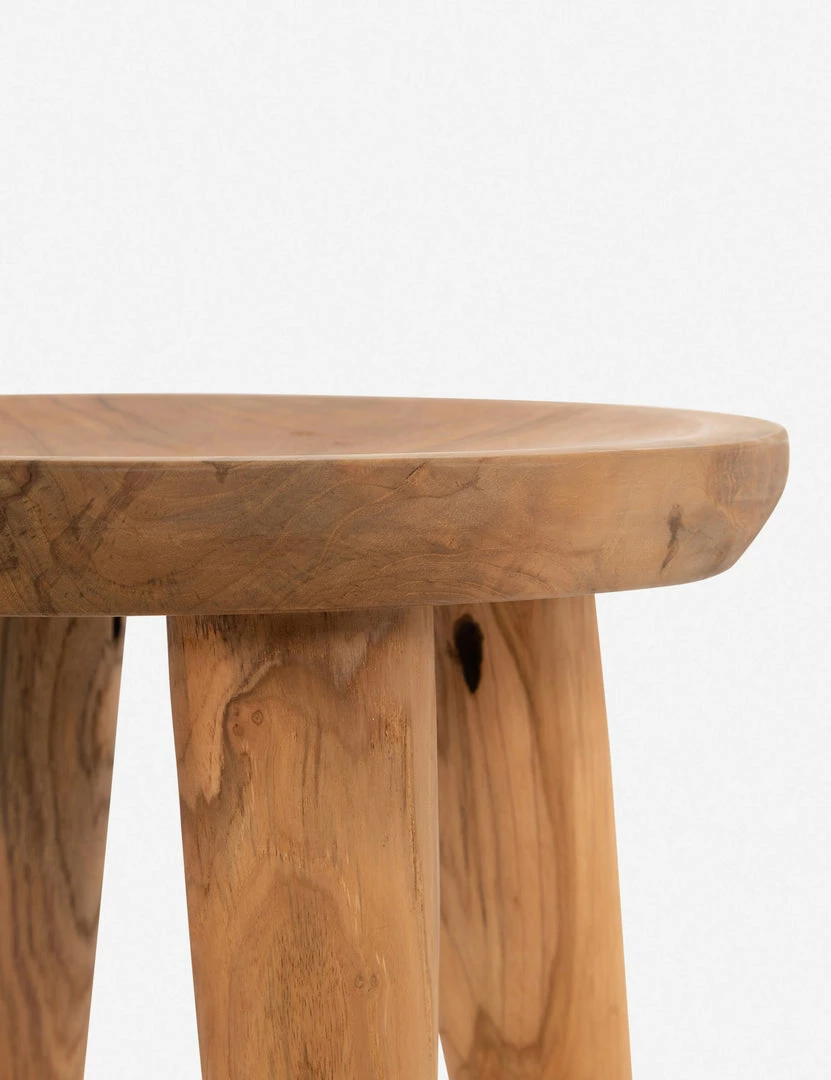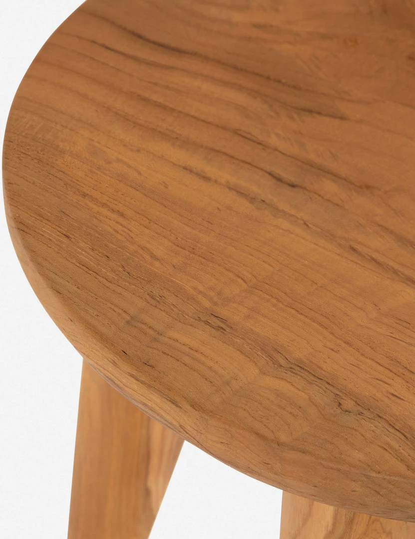 Fashioned from solid teak wood for an organic texture rich with rustic character, this stool gives you beauty and durability, complete with natural knots and graining throughout the design. A round top and tapered legs cast a timeless profile full of earthy appeal.