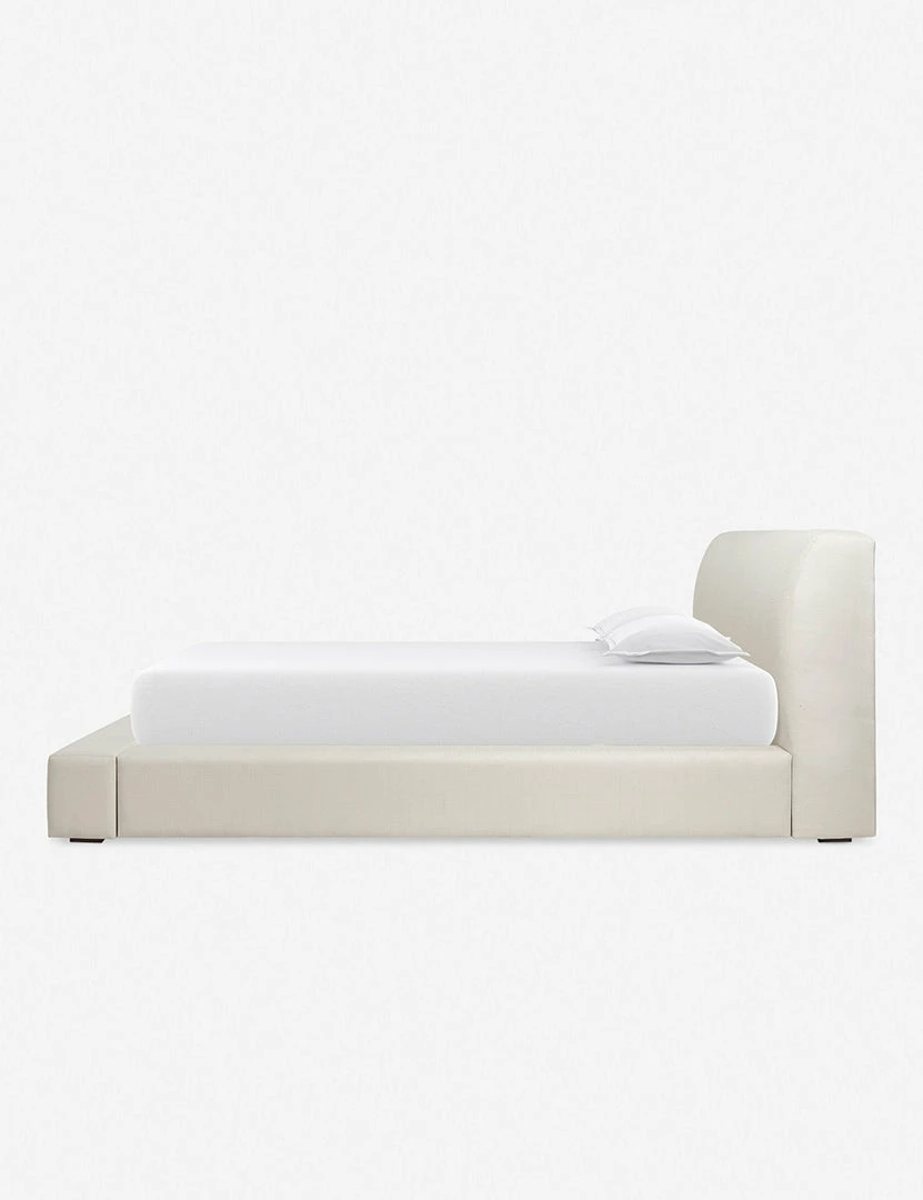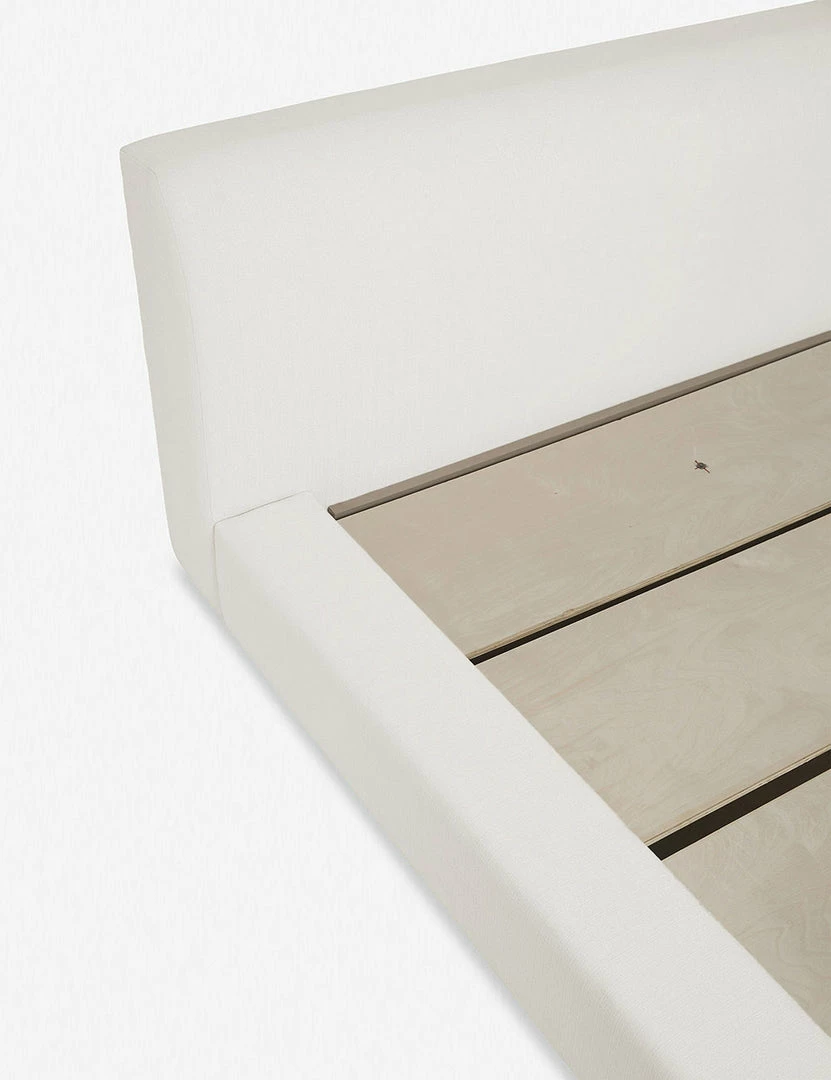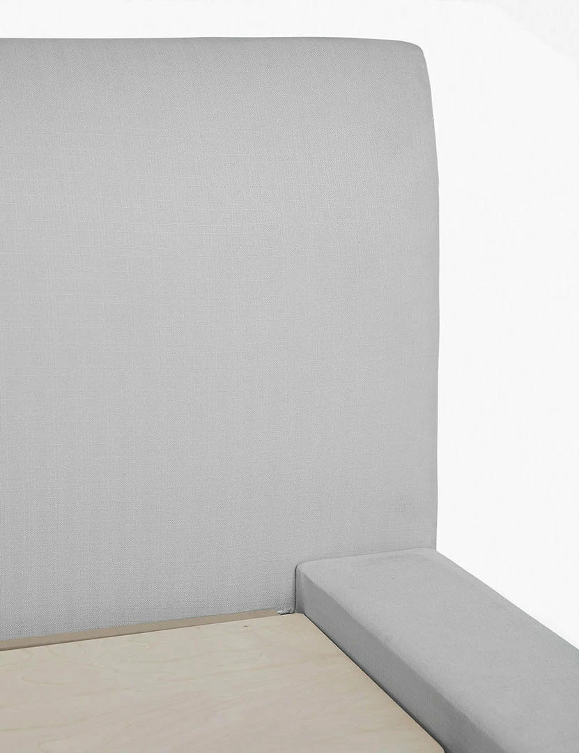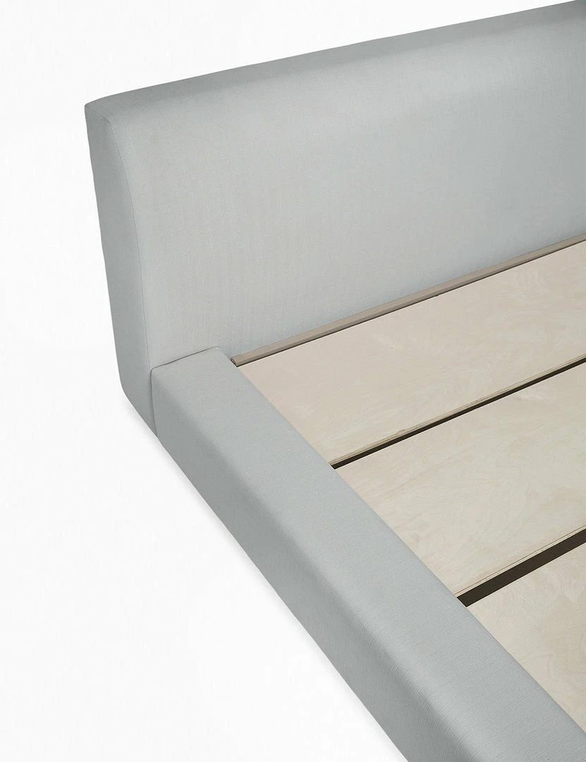 Clean, upholstered lines bound this upholstered platform bed frame with a soft border that will elevate your bedroom feel with a refined, gentle touch. With its oversized and low-slung profile, this smooth, balanced modern platform bed frame with headboard design offers a grounding focal point for a tranquil space.