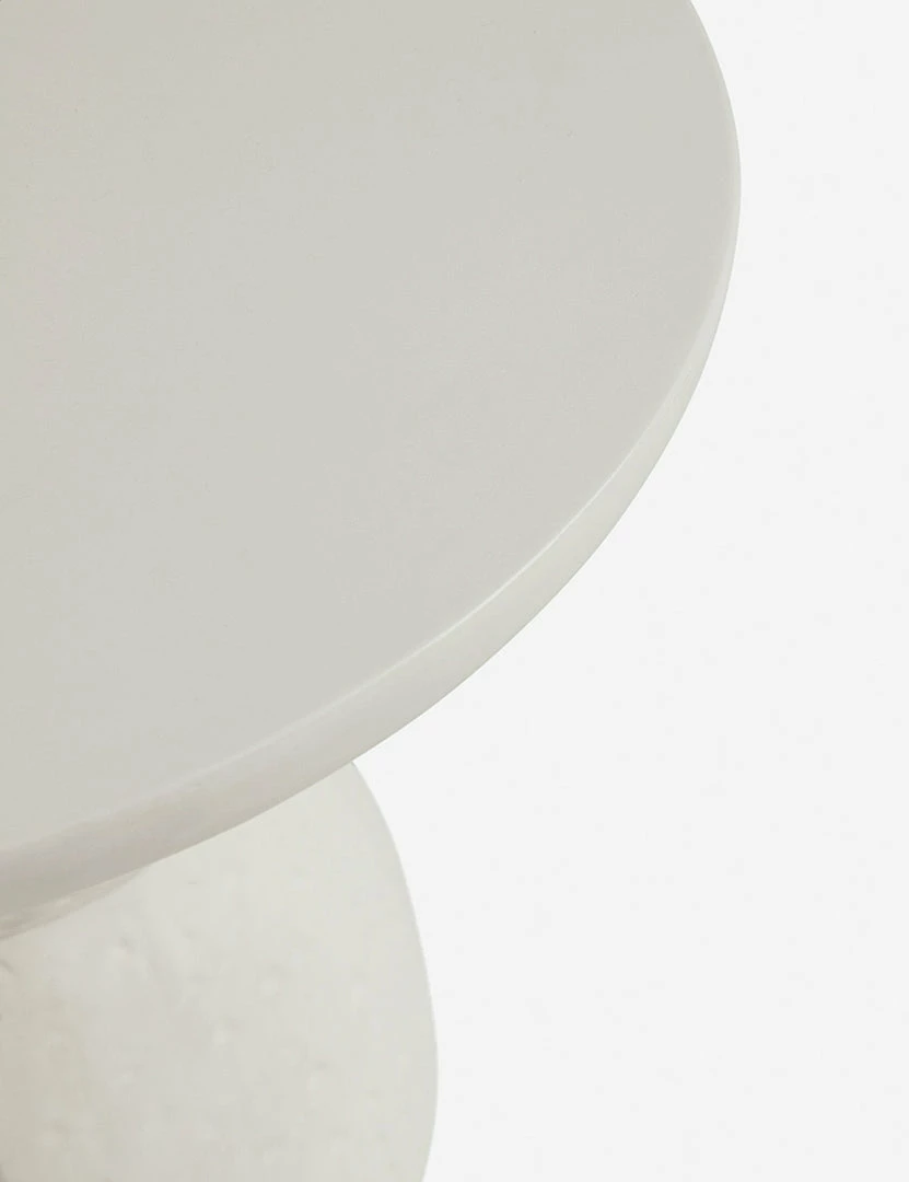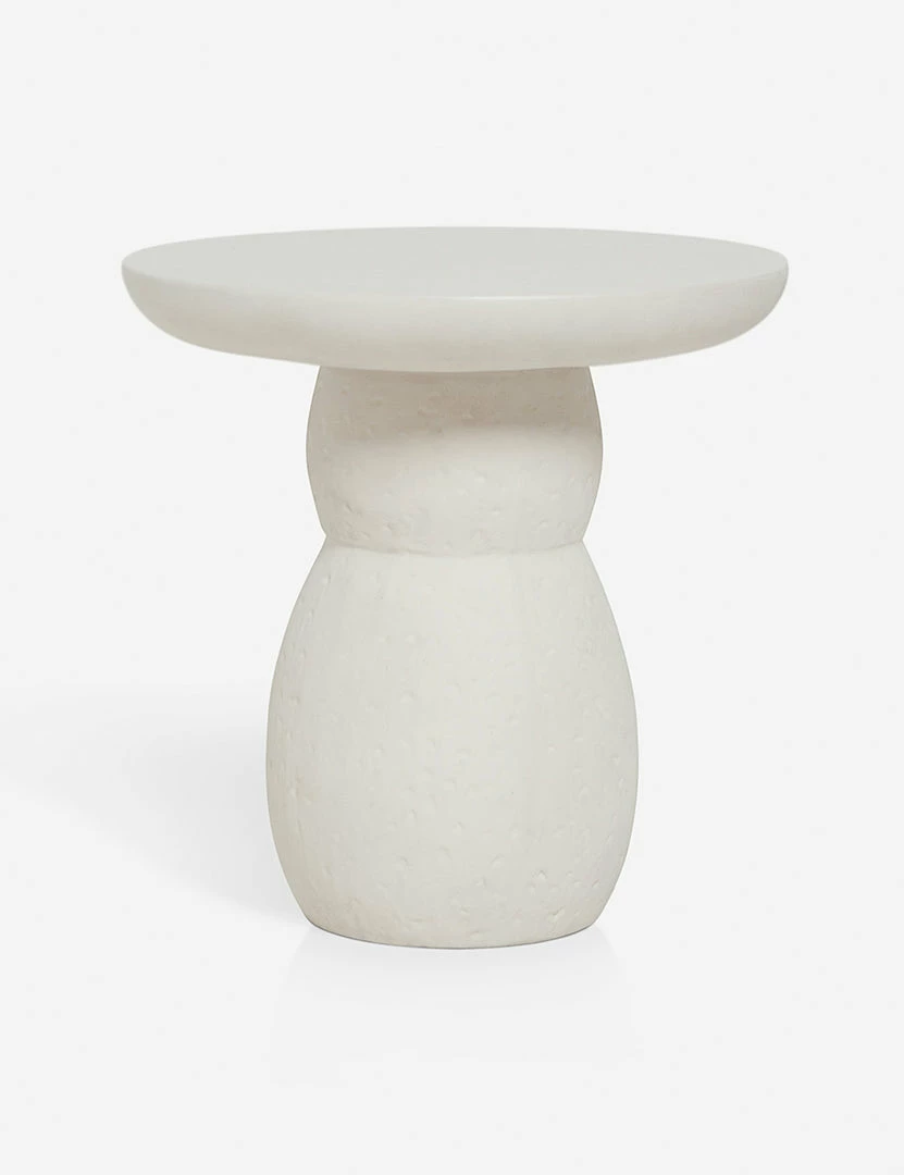 Inspired by the lightness and airy feel of clouds, this side table’s weighty construction provides a playful contrast to its curved form and matte white finish. Place this end table next to a sofa or favorite chair in your living room or outside on your terrace or patio. This piece is from our exclusive Sarah Sherman Samuel collaboration and features all the trademarks of her warm, edited style.