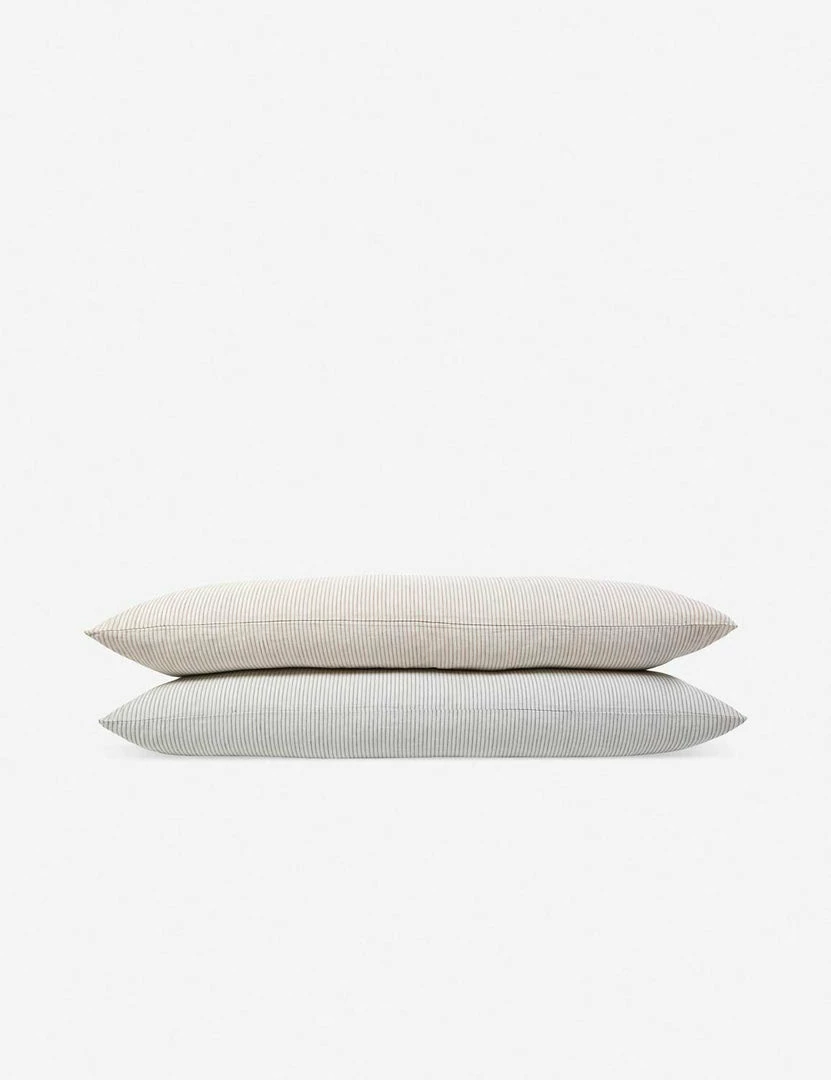 The Connor bedding collection is made with an ultrasoft linen-cotton blend featuring subtle stripes in a muted palette. Mix and Match this oversized pillow with other designs for a layered look.