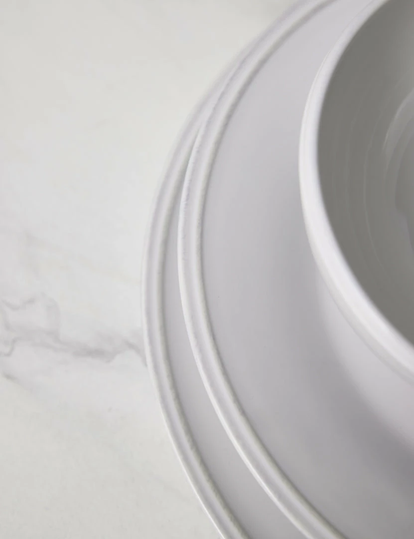 Refined lines, versatile design, and durable stoneware construction make the Costa Nova Friso dinnerware set a favorite, from fine dining to everyday eating. The grooved edge of this dishes set is hand-painted for an artisanal touch that will fit perfectly into your home decor.
