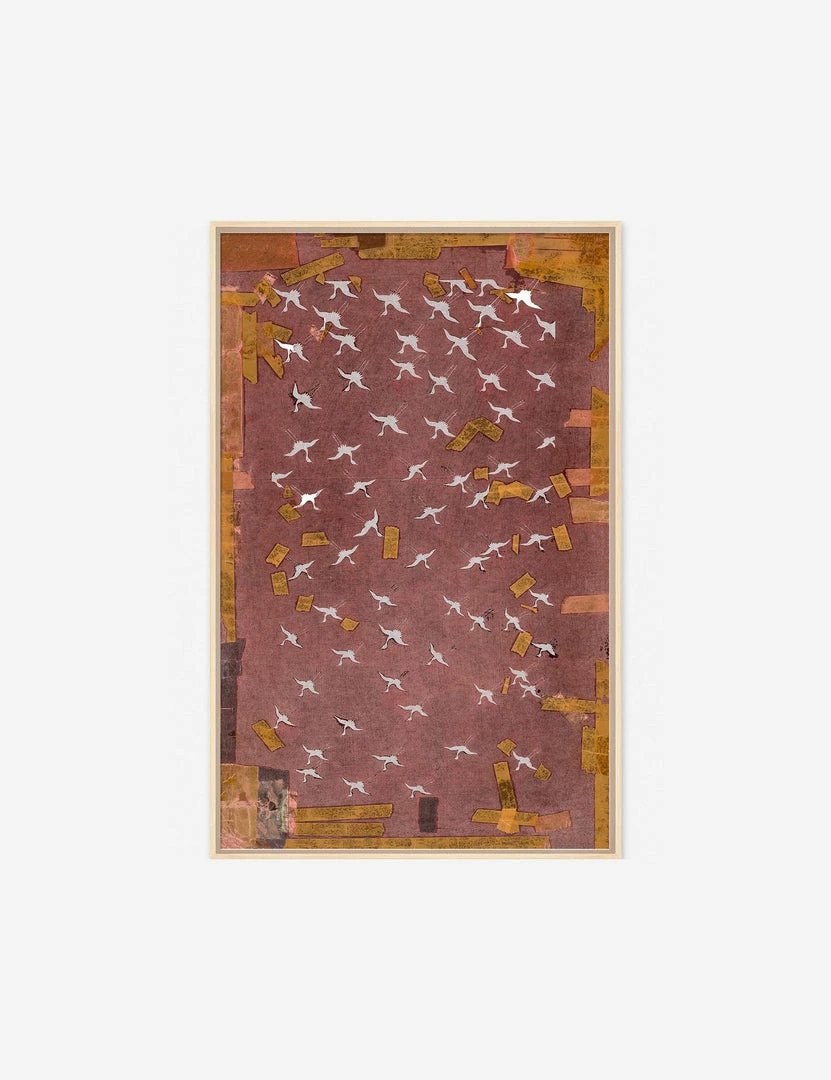 Featuring a dance of ascending cranes, this wall art piece acts as the perfect complement to any moody or small space. Pair with similar pieces to hang triptych for a beautiful installation.