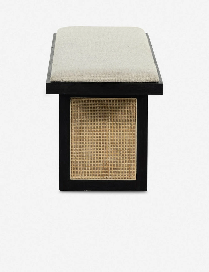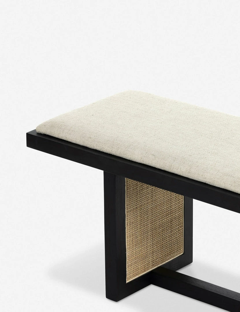 Dynamic seating gets a fresh look in this versatile bench. The solid mango wood frame features cane paneling for added texture and fresh appeal while high-performance upholstery offers practical touch for your dining room or a high-traffic entryway.