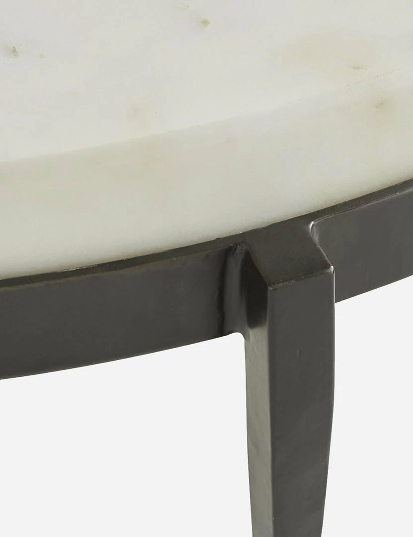 Blend your modern aesthetic with industrial silhouettes for a luxe look with an edge. This round cocktail table features a white marble top on a black five-leg base.