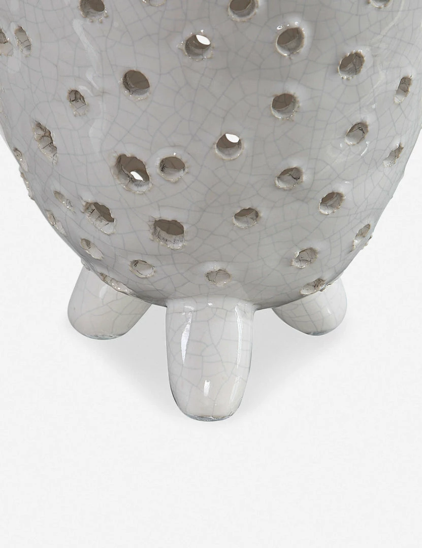This footed vase casts an organic silhouette pierced with holes to offer texture and catch the light. We love this ceramic vase for a sculptural addition to a space that blends natural touches with modern style.