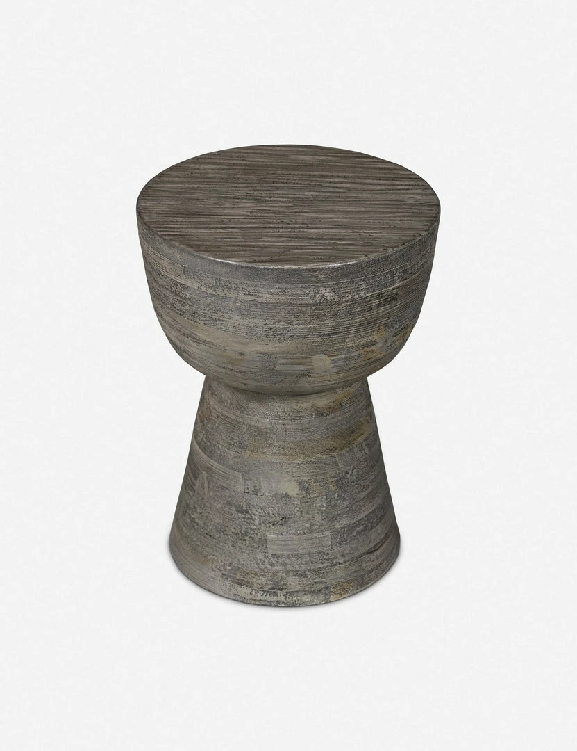 Crafted from wood, we love the hourglass shape of this accent table. Style at the edge of your sofa or as a layering piece in a vignette